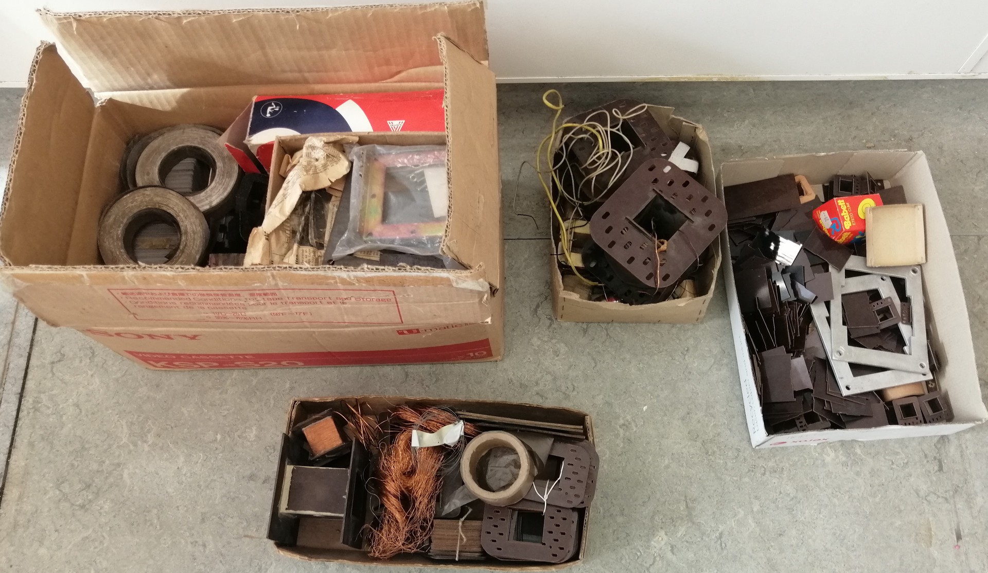 1. Most jelentkezel rá. 2. Én félreteszem (konkrétan kiveszem a kidobásra és megsemmisítésre ítélt cuccok közül). 3. A járvány lefutása után (ha be lehet jönni a munkahelyemre) eljössz érte (Bp. Lágymányos, munkaidőben). Trafó-anyag: Ingyen vihető, de azzal a kitétellel, hogy ha pénzért adod tovább (pl. elviszed a MÉH-be, stb...), érezd erkölcsi kötelességednek a hasznod 25%-át eljuttatni nekem. Ha felhasználod, vagyis trafót csinálsz belőle (akár magadnak, akár eladásra - természetesen pénzért), akkor továbbra is ingyen vihető. Szeretném, ha valóban felhasználásra kerülne! Nagy dobozban - trafóvasak, többnyire EI, különböző méretben, de van benne (ahogy látszik is) tekercselt lemez is. Többi dobozban - bakelit csévetestek különböző méretben. Némelyiken részben tekercselt huzal (megkezdett, de nem befejezett vagy részben bontott trafó) A méretet jól illusztrálja, hogy a jobb szélen lévő fehér doboz A4-es méretű, a súlyát hozzá lehet képzelni. Nem a "szatyorban elviszem" kategória... A jelentkezés sürgős lenne (az elvitel nem!), mert ha nincs rá jelentkező, pár napon belül elviszik. Trafó: Sajnos az adatlapja nehezen olvasható, így nem tudom megmondani, hány wattos, de sok. 2 x 190 V / 42V Ha érdekel, megmérem a méreteit. (A súlyát nem, mert nincs 10 kiló fölött mérő mérleg a közelben...) A jelentkezés sürgős lenne (az elvitel nem!), mert ha nincs rá jelentkező, pár napon belül elviszik. Kimenőtrafók: 3db, egyforma, nagy eséllyel csöves TV-ből való kimenőtrafó. Valaki korábban már vitte volna ezeket, de a COVID miatt akkor nem tudott jönni. Ha jelentkezik egy héten belül, akkor az övé mindhárom, különben a szokásos jelentkezési sorrend, akár egyesével is. A hozzászólás módosítva: Ápr 7, 2021