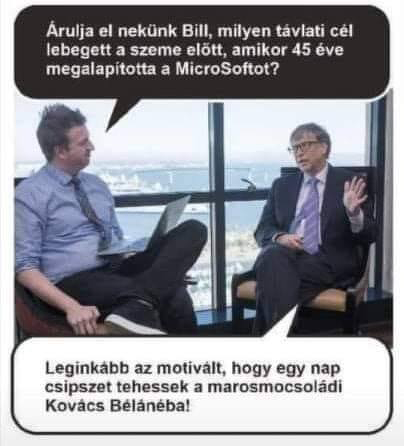 ![]() B. Benne van a "buliban" (mert profitorientált). Idézet: „Bill Gates egy semmitmondó cégből milliárdos lett. Miért? Mert tudta, hogy mit kell tennie...” Ezt már sokan tudják/tudták.