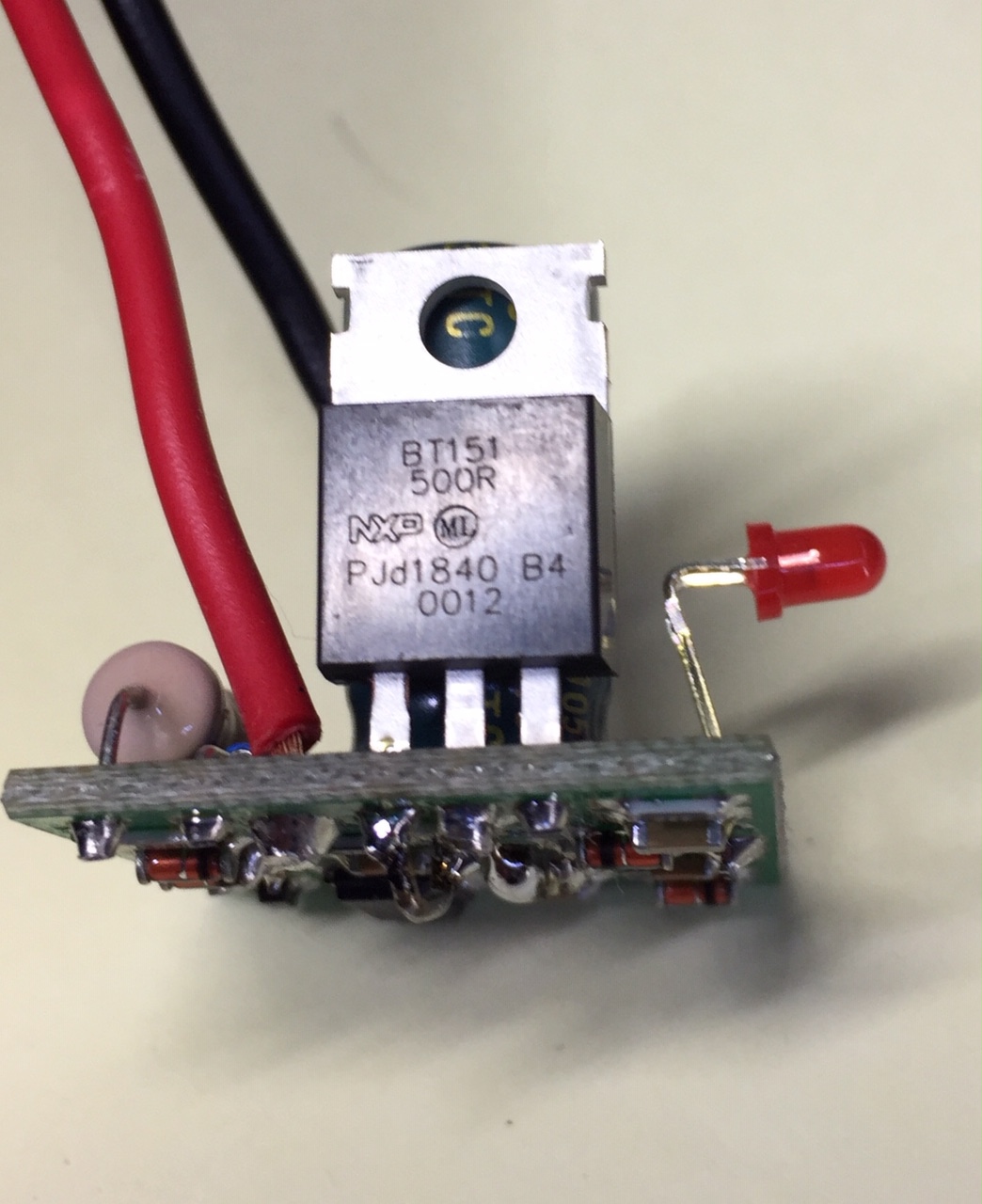 Először NOR Gate-el próbáltam ,de azzal nem működött. P csatornás MOSFET (IRF9Z24) lett a megoldás. A MOSFET gate elé tettem még egy 1K ellenállást, az akku pozitív kimenetre van kötve a drain, a negatív és a source között pedig a terhelés. Azóta már módosítottam, izzó helyett egy fűtőellenállás van benne. Az ellenálláson pluszban még egy led. A folyamatos terhelés tényleg nem jó, az meríti az akkut. Ezzel a szünetidős terheléssel a feszültség viszonylag stabilan tartható.