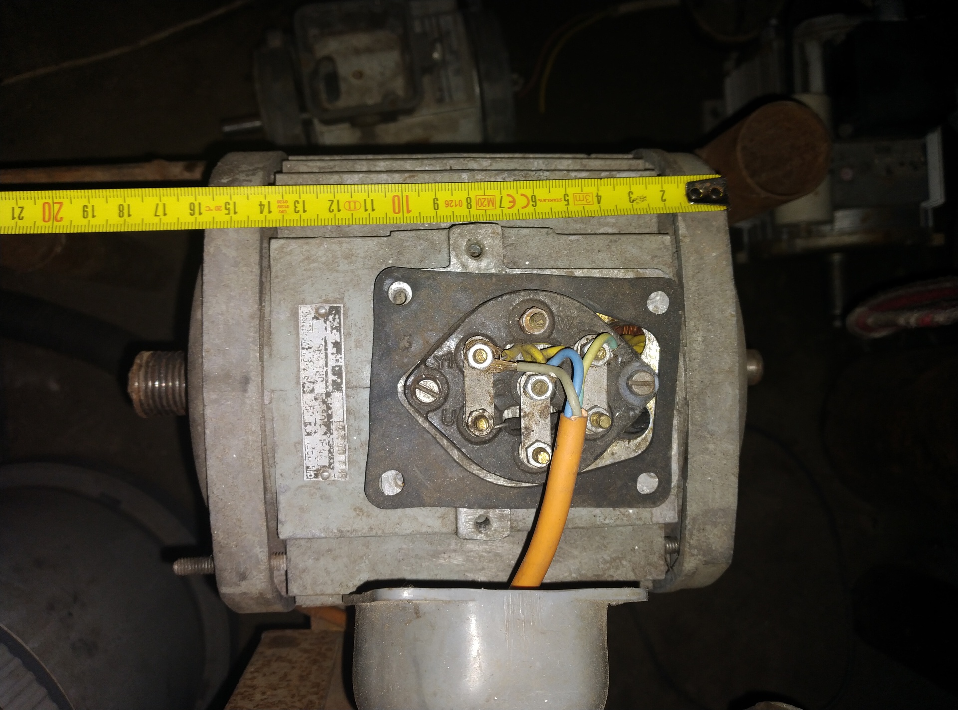 Van egy ilyen motorom, szeretném bekötni 230-ra, de nem tudom a teljesítményét. Három fázisú, gyári csillag, adattabla nincs rajta.