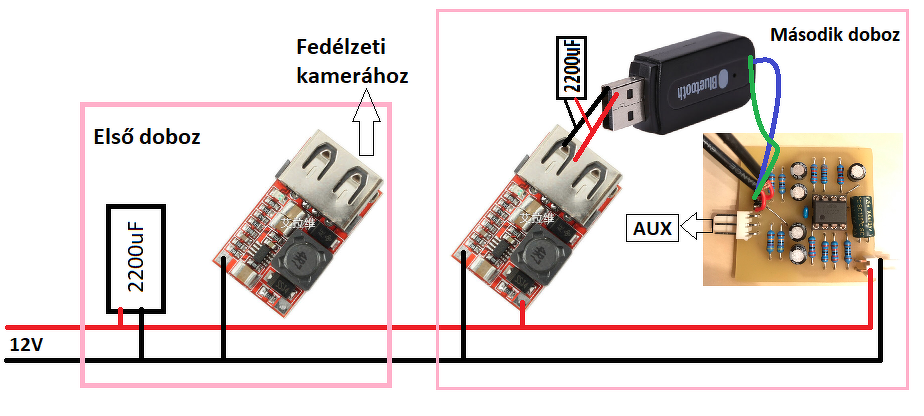A rádió és a panel közé jó minőségű mikrofon kábelt kötöttem. Ha csak az erősítő van rákötve nem jelentkezik alapzaj, a rádió 0-30 között 8 as fokozaton már zavaró az alapzaj Lehetséges a kapcsolás erősítését növelni, jobb lenne kb egy szintre hozni a CD jelszintjével. Csatolok egy elrendezési rajzot, hogy hogyan alakítottam ki a rendszert. Esetleg ha a második 12/5V os átalakítót egy 7805 re cserélném hozhatna javulást? Minden szűrő kondezátorral kötöttem párhuzamosan egy egy 100nf-os kondenzátort is. A hozzászólás módosítva: Feb 13, 2021