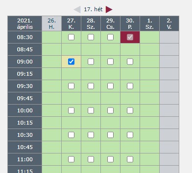 Mindegy, hova lapozok. Ráadásul akkor is zöld mezőket jelöl a weblap, amikor nincs is ügyfélfogadás...