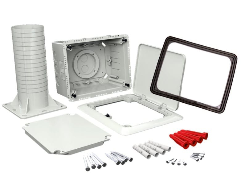 Vagyis semmilyen szabványnak nem mond ellen, hogy ne lógjon ki se a földön, se a falon, és a doboznak se kell kiállni?