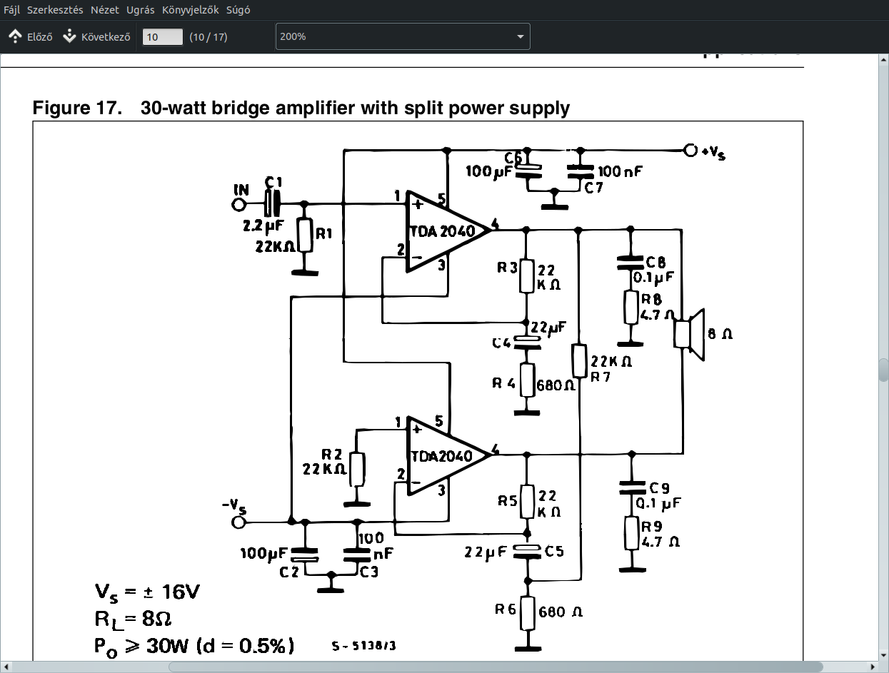 Jobb lenne a 2050-es csak sajna nem nagyon találtam, vagy épp nincs raktáron, úgyhogy ez most felejtős. Lehet megcsinálom 2db 2040-el hídba kötve. Azzal már 30W-al lehet küldeni 8Ohm-os hangszóróval. Egyenlőre bőven jó lesz. Majd később lehet csinálok nagyobb teljesítményűeket meg csöveseket is, de az még odébb van.