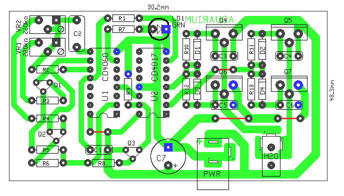 Egyéként most hogy számoltam jöttem rá, hogy elrajzoltam a 4017 órajel bemenetét, mert azt a Q6-ra kellene kötni. De kijavítottam..