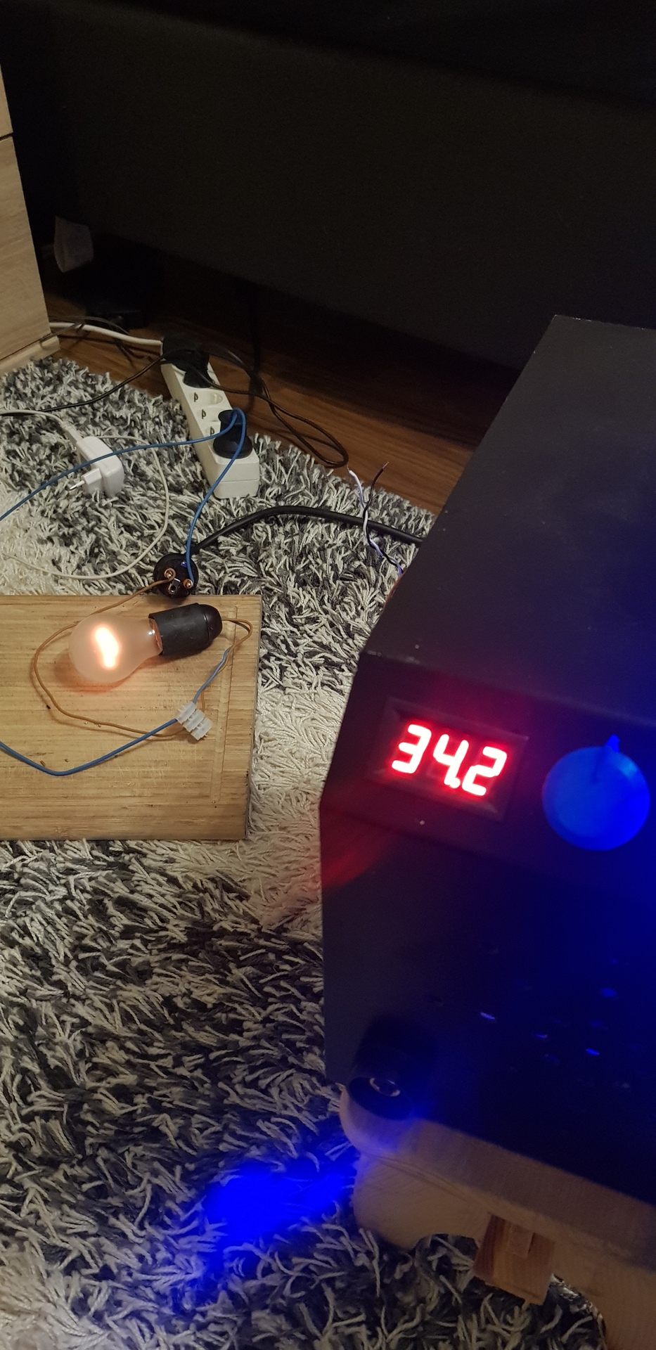 Ennyire jutottam ma megtekertem a kis trafot, össze raktam es mivel jok az IGBT panelon mer 5.1-5.2 Volt, igy kiprobaltam sorbakötve egövel. Mint a fenykepen latszik az egö halvanyan vilagit es a heg. kivezetesein meg megjelent 34 Volt. Van meg egy kis forrasztani valo rajta, utana elesben. A vezerles vezetösavjait vegig forrasztottam, mint feljebb javasoltak.