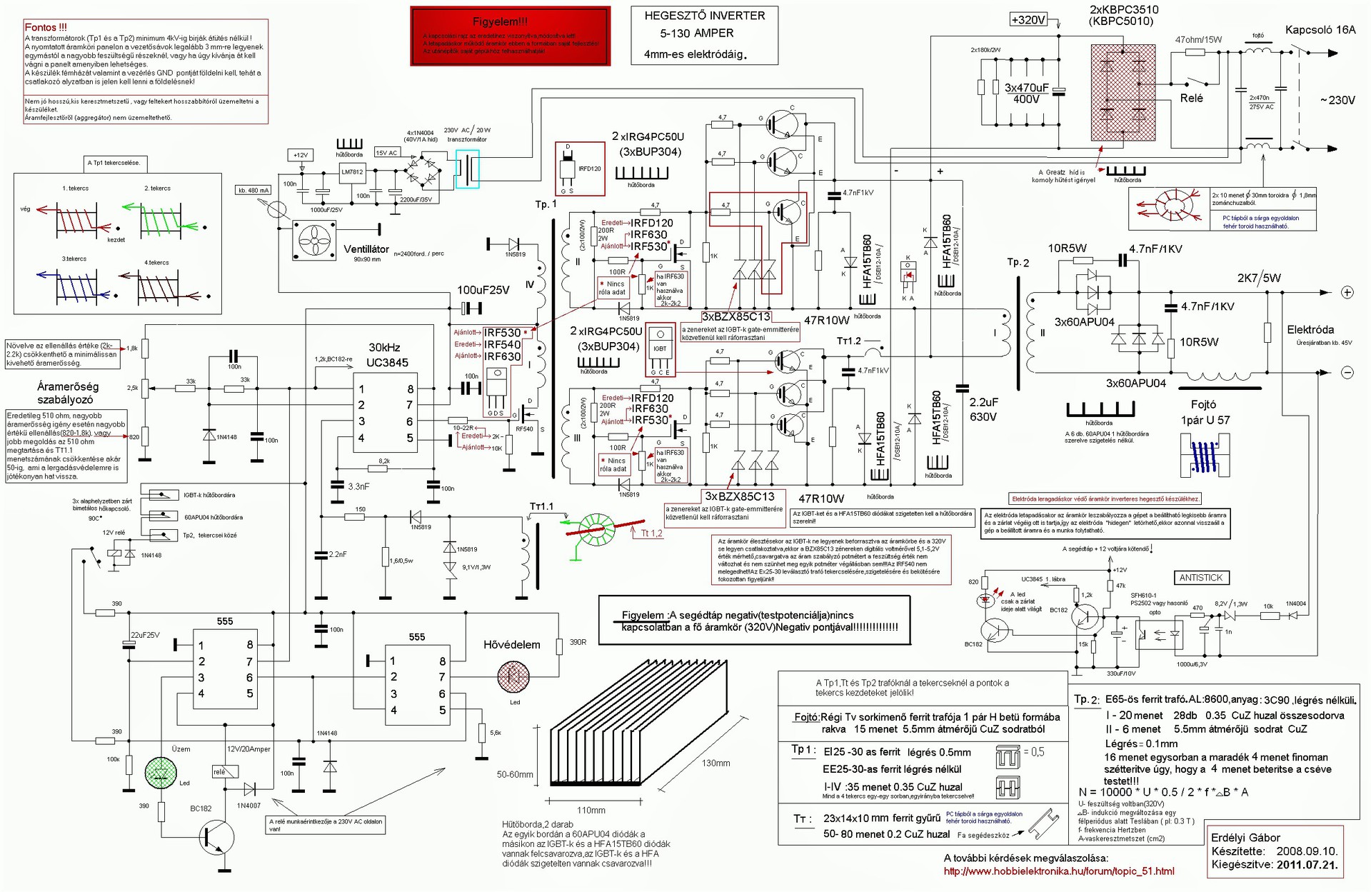 Nem tudom, hogy nekem tünik csak fel vagy ez igy jol van. Erdekesseg keppen a fent irt gep akar mikor probara került a sor mindig pukk lett a vege. Össze vetettem az Erdelyi Gabor altal keszitett rajzot a nyaktervvel. Hat nem tudom, de a levalaszto trafo tekercseinek a sorrendje nem azonosak. Tudom, hogy ebben a temaban sokkal okosabbak, tapasztaltabbak vannak itt, sokan utanepitettek mar a gepeket es erdekesseg keppen soknak müködik is. A maci kapcsolasi rajzon az 1.-es tekercs nem a 2.-esel van szemben hanem a 3.-as tekercsel, viszont a vezerles terven igen. Eddig mindig a nyak terv alapjan keszitettem a levalaszto trafot, hiaba szigeteltem, mindig pukkant. Most akkor mi a helyes sorrend:1-2-3-4 vagy 1-3-2-4 mert a ket rajz ellent mond egymasnak.