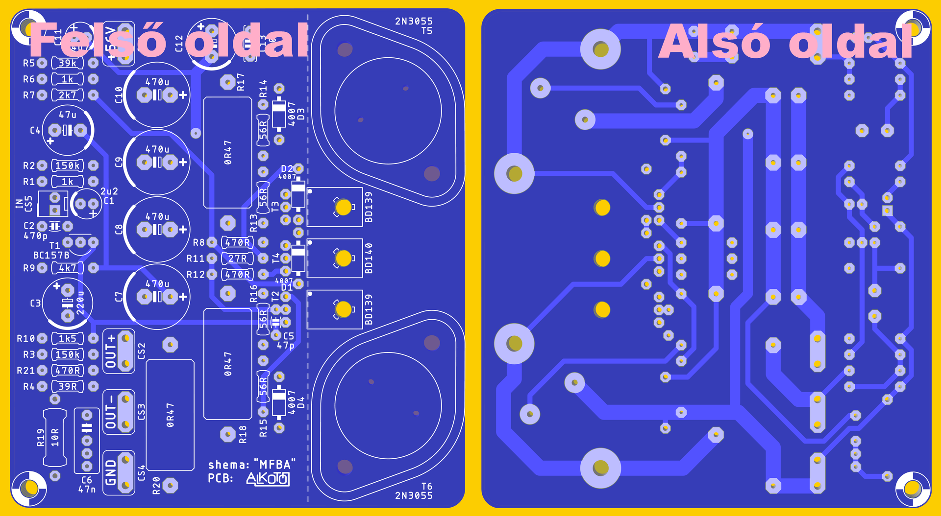 Alkotó szándékosan kivette a top oldalról a To-3 tokból a peddet. Mert ha hűtőbordát szerelünk a panelra akkor a tranyó Colleltora és Bázisa és Emitere rövidzárba kerül. Szerintem teljesen kézelfogható megoldás. Én is gondoltam rá.