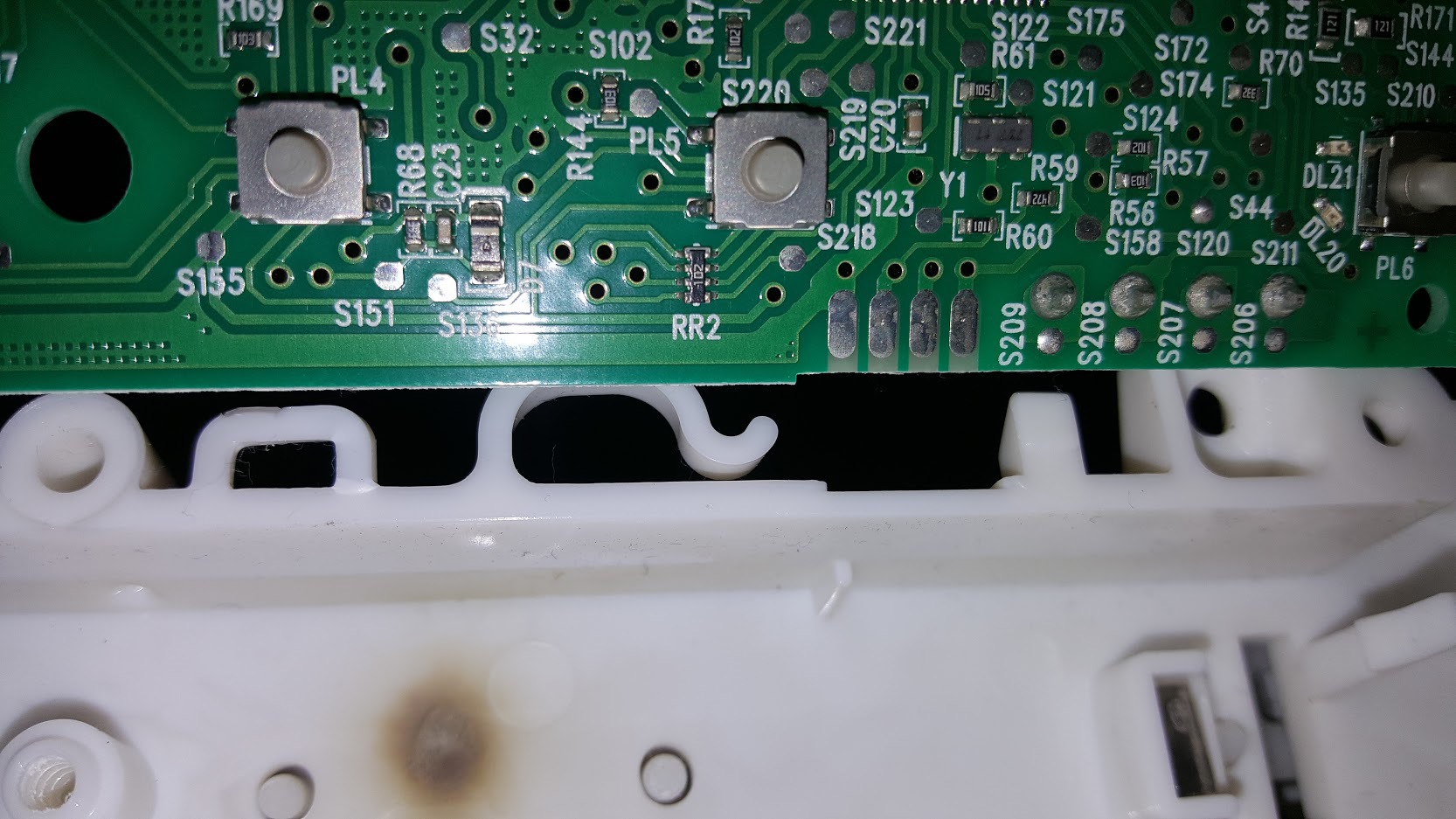 AEG mosó-szárítógépben egy dióda megsült egy vezérlő elektronikán, de nem tudtam kideríteni a tipusát. Az ugyfelszolgalat@electrolux.com sem tudott segíteni, viszont küldött két kapcsolási rajzot, hátha segít.... Részletek:Kisfiam nyomkodta a mosógép gombjait, egyszerre többet, mikor a mosógép leállt, elsötétedett. Megnézve az elektronikát, van egy szembetűnő égésnyom az egyik alkatrésznél.... presze nem zárja ki, hogy más gond is legyen.... A teljes panel csere, okosba kb. 60.000 Ft..... annyit nem ér a gép... viszont bevállalnék néhány forrasztást. AEG Lavamat 16950A3 Model Prod No. 914605512 00 Ser No. 140 00060 Készülék nyomógomb panelján ( Elektrolux 132541770 Boot ver. B040009 B 40/2011) egy D7 jelű dióda elfüstölt (képet mellékelem).