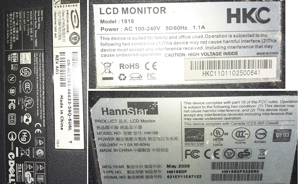 A monitorok adatlapjai. A Dellről nem tudok semmit.