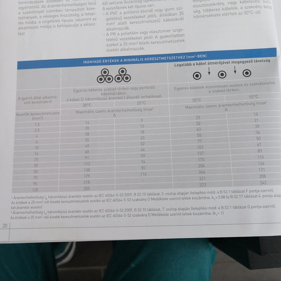 Ezért van a szabványban a falban elhelyezésnél a több egyeres vezeték az A1 csoportban, a köpenyes meg az A2-ben (a különbség 1 amper). De az épületüreges és a kábeltálcás az meg ugyanaz egyeresekre is és köpenyesekre is.