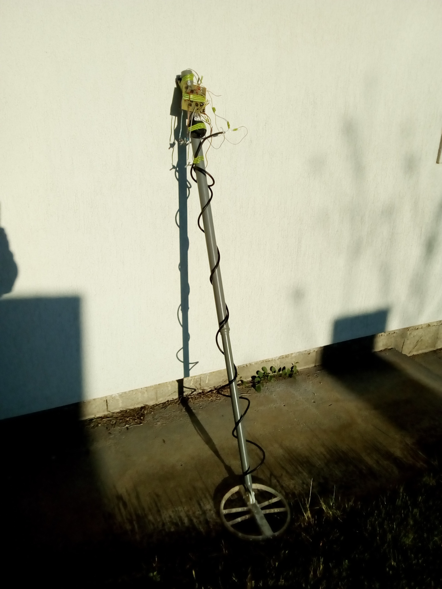 A nagy bezártságban elkezdtem részemről ismeretlen utakon bóklászni. Készülőben a négyszögjellel hajtott fémdetektor.