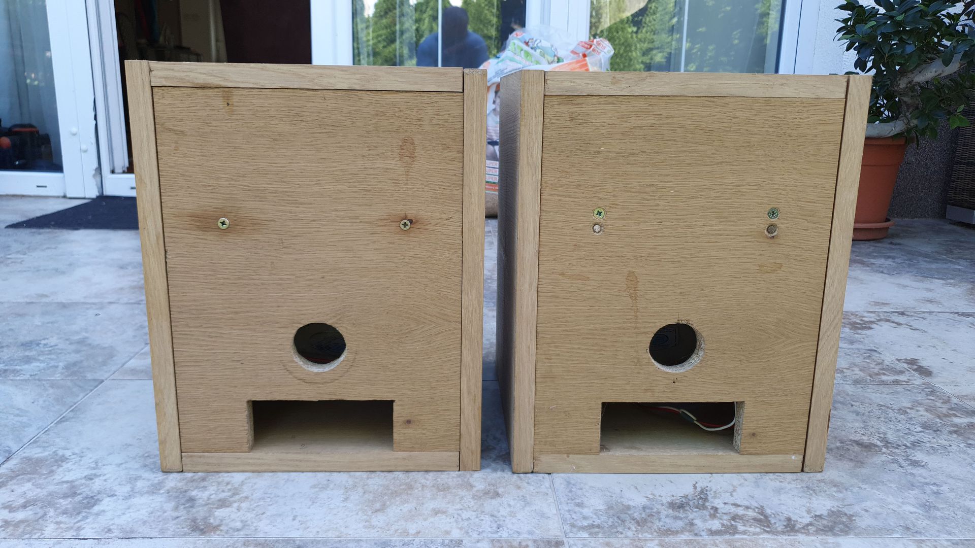 Elvihetők házi gyártású, majdnem befejezett hangfalak. Videoton retro hangszórókkal, a képeknek megfelelően Bp. XIV. kerületből. Hangváltó nincs bennük.