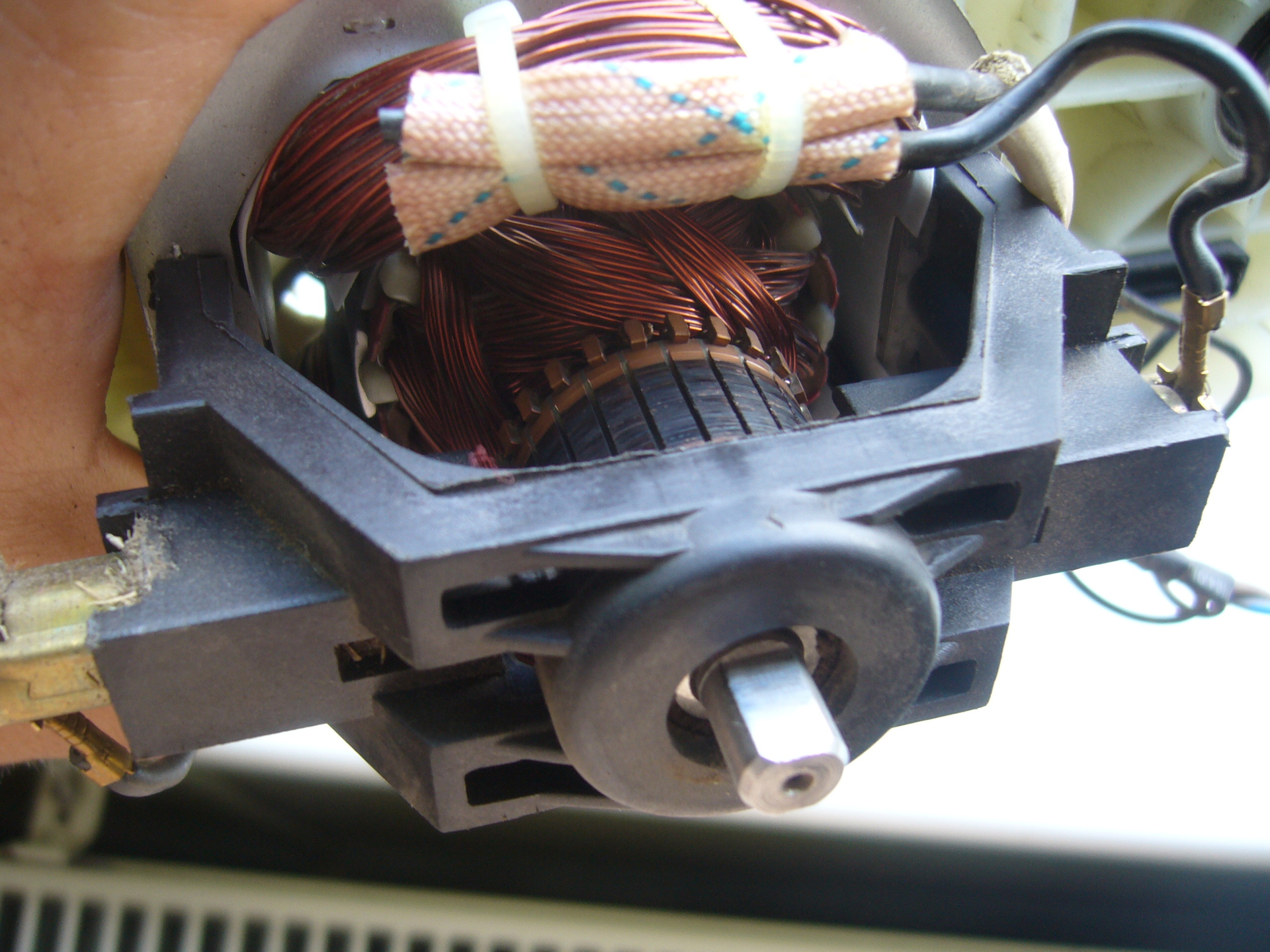 Nem hiszem hogy zárlatos, mert ment, illetve megy ez a vacak, úgy értem magas hangon nyüszítve forog, pont mint amit fog a csapágy. Vajon ha sikerül befogni a forgórész tengelyét akkor akár le is csavarhatom?