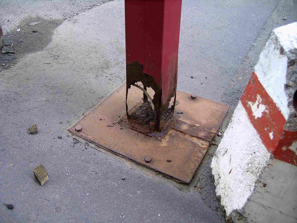 egy sorompónak az fotocella tartójaként szolgál (a vezeték is látszik)