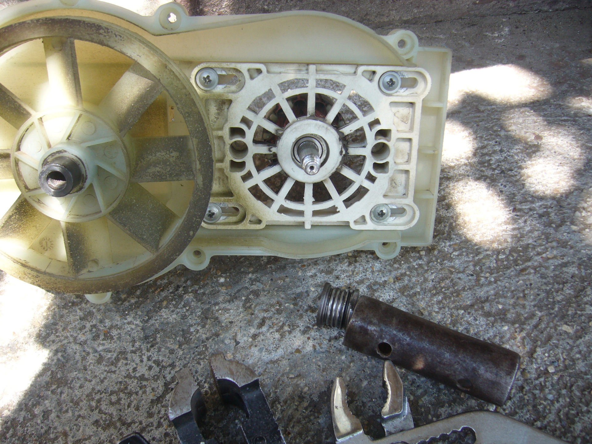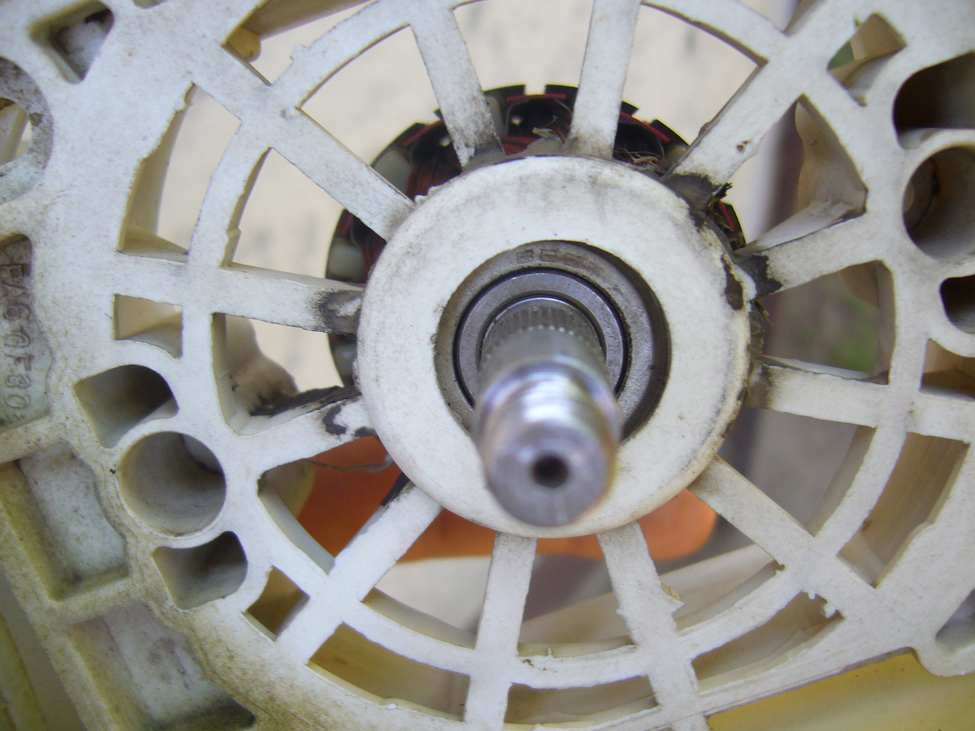 Nem hiszem hogy zárlatos, mert ment, illetve megy ez a vacak, úgy értem magas hangon nyüszítve forog, pont mint amit fog a csapágy. Vajon ha sikerül befogni a forgórész tengelyét akkor akár le is csavarhatom?