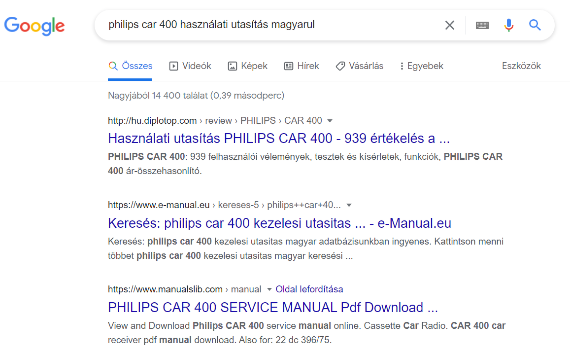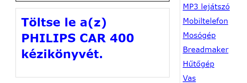 Sziasztok! Egy Opel Astra G autóban lévő Philips CAR 400 autós rádiómagnó magyar nyelvű használati utasítására lenne szükségem. Tudnátok segíteni, honnan tudnék egy ilyen leíráshoz hozzáférni?