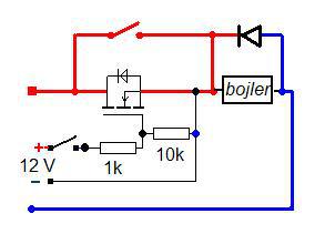 Ha a 12 volt teljesen "földfüggetlen", akkor jó az n-fet is, a drain a pluszon, source-ben a bojler.