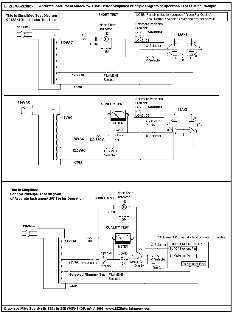 El lehet készíteni elektronikus formában is, a mátrixpontokban megfelelő kapcsoló elemmel, kódkártya helyett kódtáblázattal. A rácsáram mérésére közvetlen, és közvetett módszert lehet használni. A közvetlen módszer a galvanométer (ez nem igazán járható) és a 100 kΩ -nál nem nagyobb rácslevezető ellenálláson nagyimpedanciás ( 1 - 10 MΩ) bemeneti impedanciájú műszerrel (+ némi számolás) A közvetett módszernél egy pontosan ismert értékű rövidre zárható rácslevezető ellenálláson keresztül kapcsoljuk a rácsra az előfeszültséget. Megmérjük a rövidrezáró kapcsoló nyitott állásában az anód áramot, majd a rácslevezető ellenállást rövidre zárva, az előfeszültséget addig állítjuk, amíg az anódáram ugyanannyi lesz, mint előző esetben. Ekkor arcsáram értéke az Ig = (Ug' - Ug)/ Rg képlettel számolható. Az Ug feszültség a beiktatott rácslevezető ellenállás, az Ug' a rácslevezető ellenállás rövidre zárása esetén beállított rács előfeszültség. Homályosan emlékeztem, hogy valahogy az anódárammal kell manipulálni, de pontosan nem. Hiába az 50 év, az 50 év, meghát ilyesmire már jó régen nem volt szükségem.