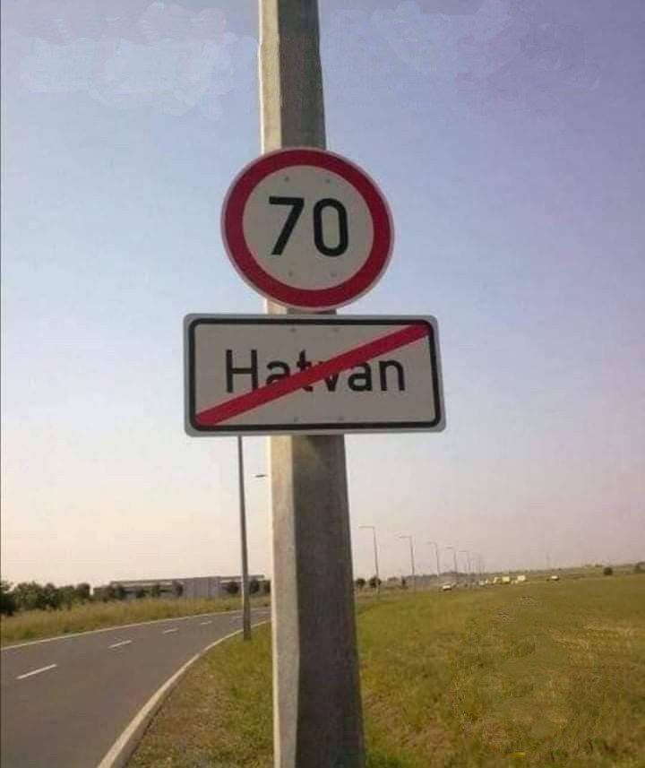 Gondolom a szembejövő forgalom számára pedig a hetvenes tábla van áthúzva pirossal.