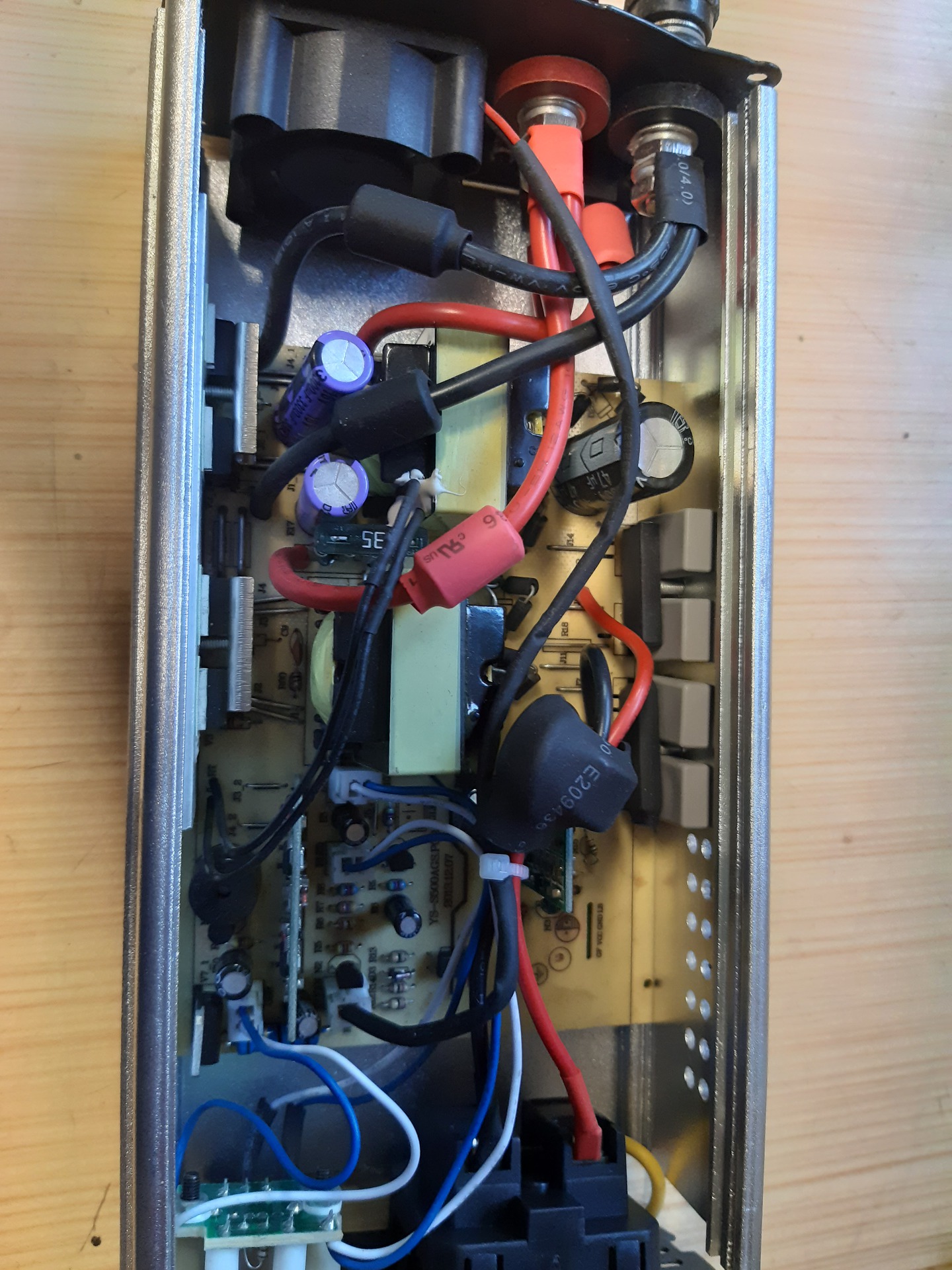 Egy napon fordulatszámszabályzós porszívót (1200 W max.) csatlakoztattam hozzá, letekertem a legalacsonyabb fokozatra, bekapcsoltam, lassan emeltem a fordulatszámot, majd néhány perc elteltével kikapcsoltam. Újra be akartam kapcsolni, de füstszagra lettem figyelmes. Az inverterből jött. A FET-ek (nem én határoztam meg, nem vagyok elektronikai szakember) zárlatosak lettek, szépen leégett a környékük.