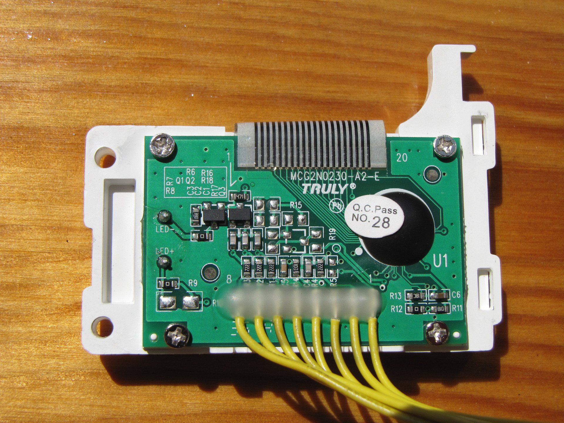 Rámértem a kijelzőre menő VEE (3) pontra, itt +12V-ot, illetve az YCC (4) pontra, ahol +5V-ot mértem.