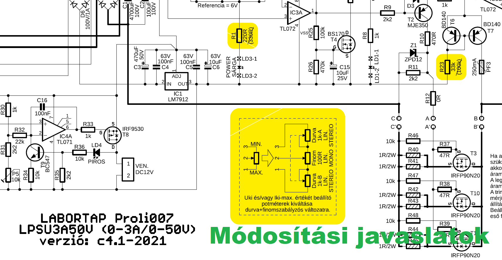 Az LPSU tápegységgel kapcsolatban javaslok 3 módosítást elvégezni.