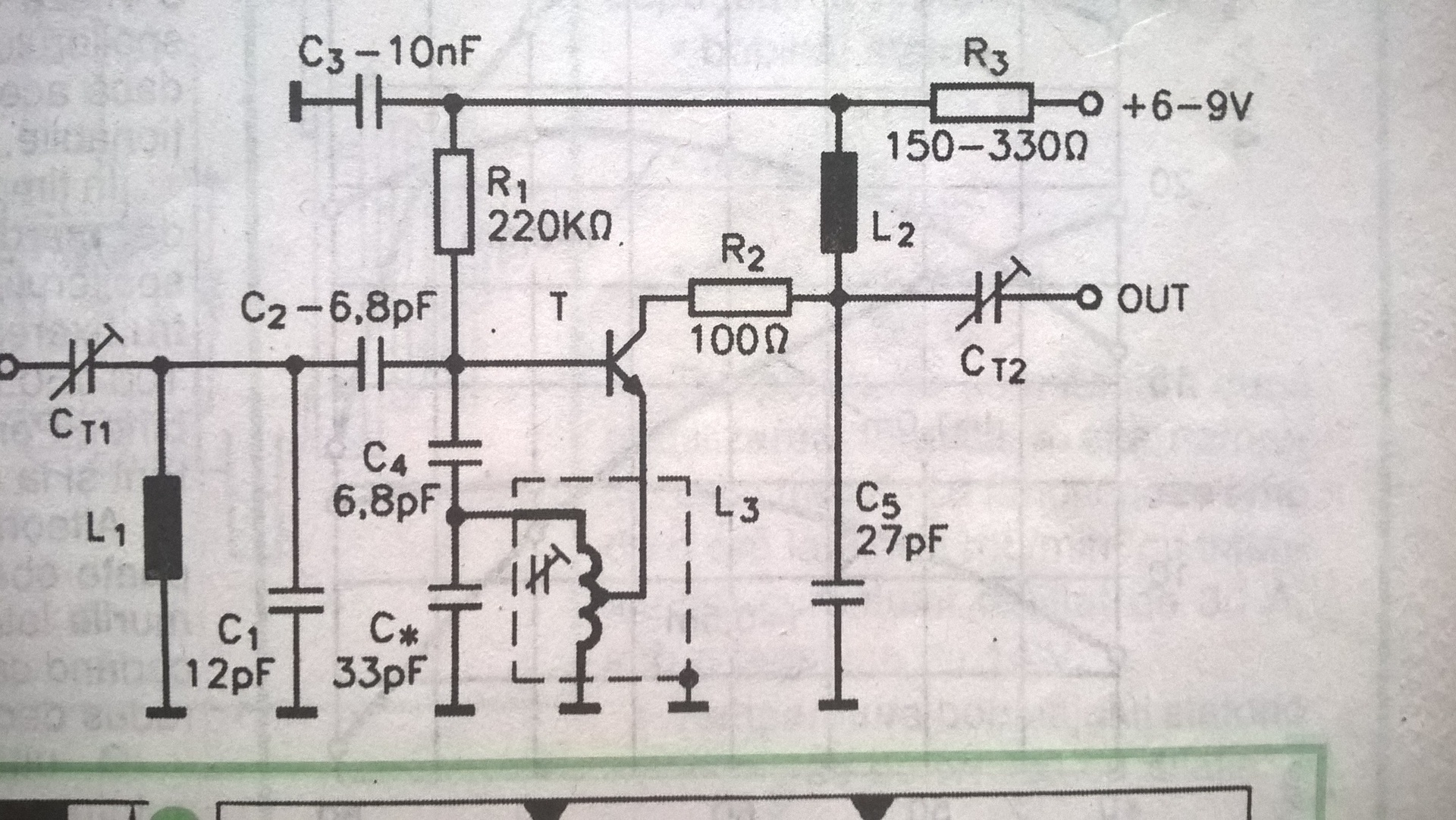 Pacsirtások figyelem CCIR/OIRT konverter kvarc nélkül.Az L1 és L2 6 menet a levegőbe 0,6 huzalból 4 mm átmérő,az L3 3 plusz 5 menet a testtől felfelé egy ferrittes tv KF trafóra 0,2 es huzalból ,feltétlenűl kell árnyékolni,a legjobbak a régi csöves tv roncsokból kibányászott KF trafók,amelyiknek van árnyékolója is,a trimmerek 25 pf de lehet improvizáni 2 db vékony műanyag szigetelésű drótból 5 -10 mm hosszába összecsavarba,a C x kondi lehet egy 40 pf trimmer vagy mégjobb,egy URH forgó,igy be lehet fogni az egész CCIR/URH sávott,a forgókondit az L3 kózvetlen közelében kell forrasztani.A tranzisztor BF tipusú RF vagy valami hasonló