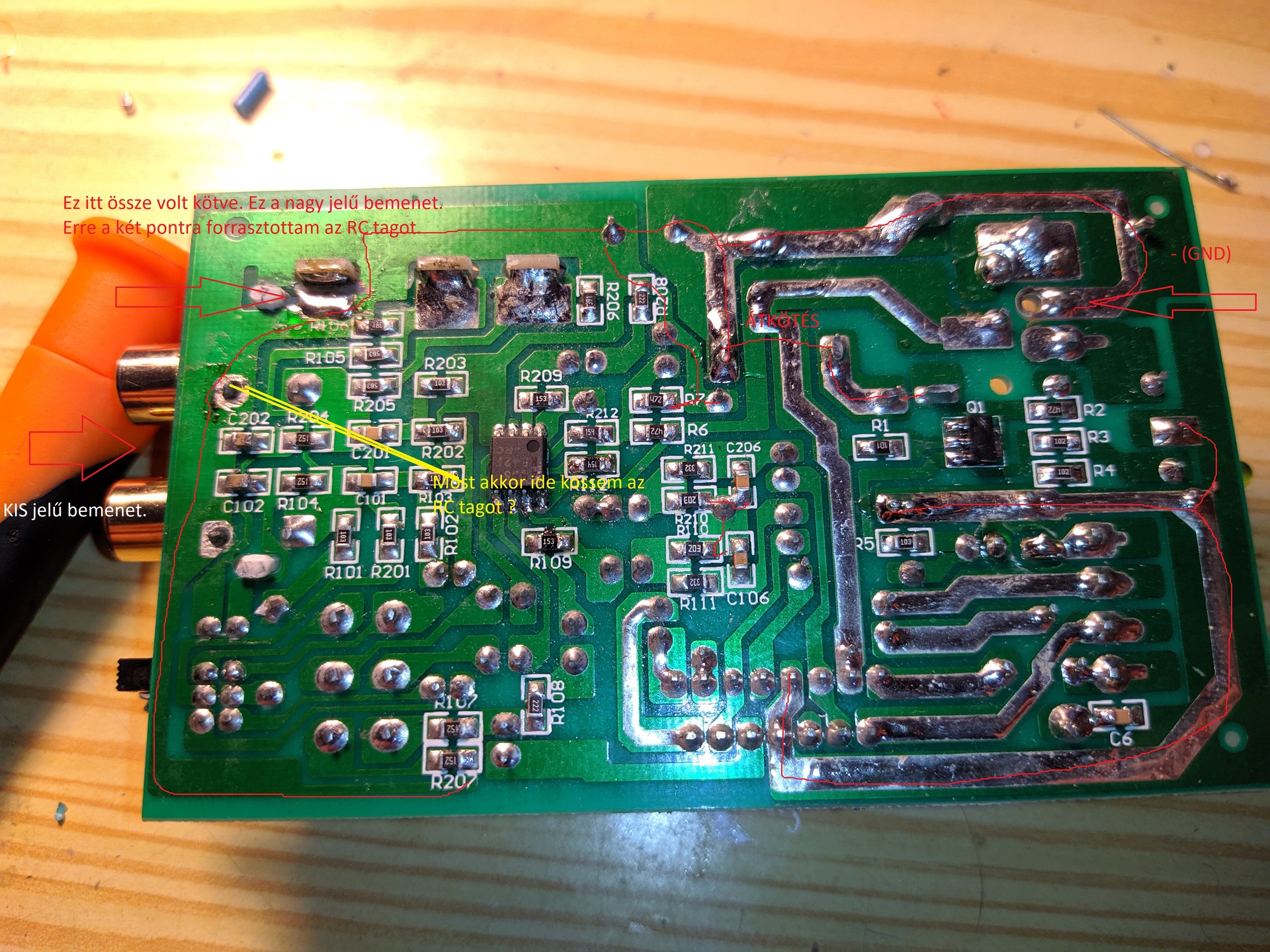 Amit pirossal jelöltem ott megy a GND. Most akkor kössem a kisjelű bemenethez az RC tagot ?Akkor is ha nem a kis jelű bemenetet használom ? A hozzászólás módosítva: Aug 15, 2021