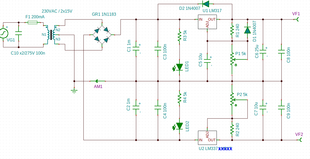 Az alábbi két kapcs.rajz közül melyik a jobb megoldás? Konkrétan, ha egy szimmetrikus tápot akarok csinálni akkor a két szekunderes trafó mind a két tekercsét egyenirányítsam és teljesen külön építsem fel az áramkört, vagy elég egyszer egyenirányítani és a középkivezetést használnám GND-nek (ahogy rajzoltam). A másik rajzot a neten találtam.