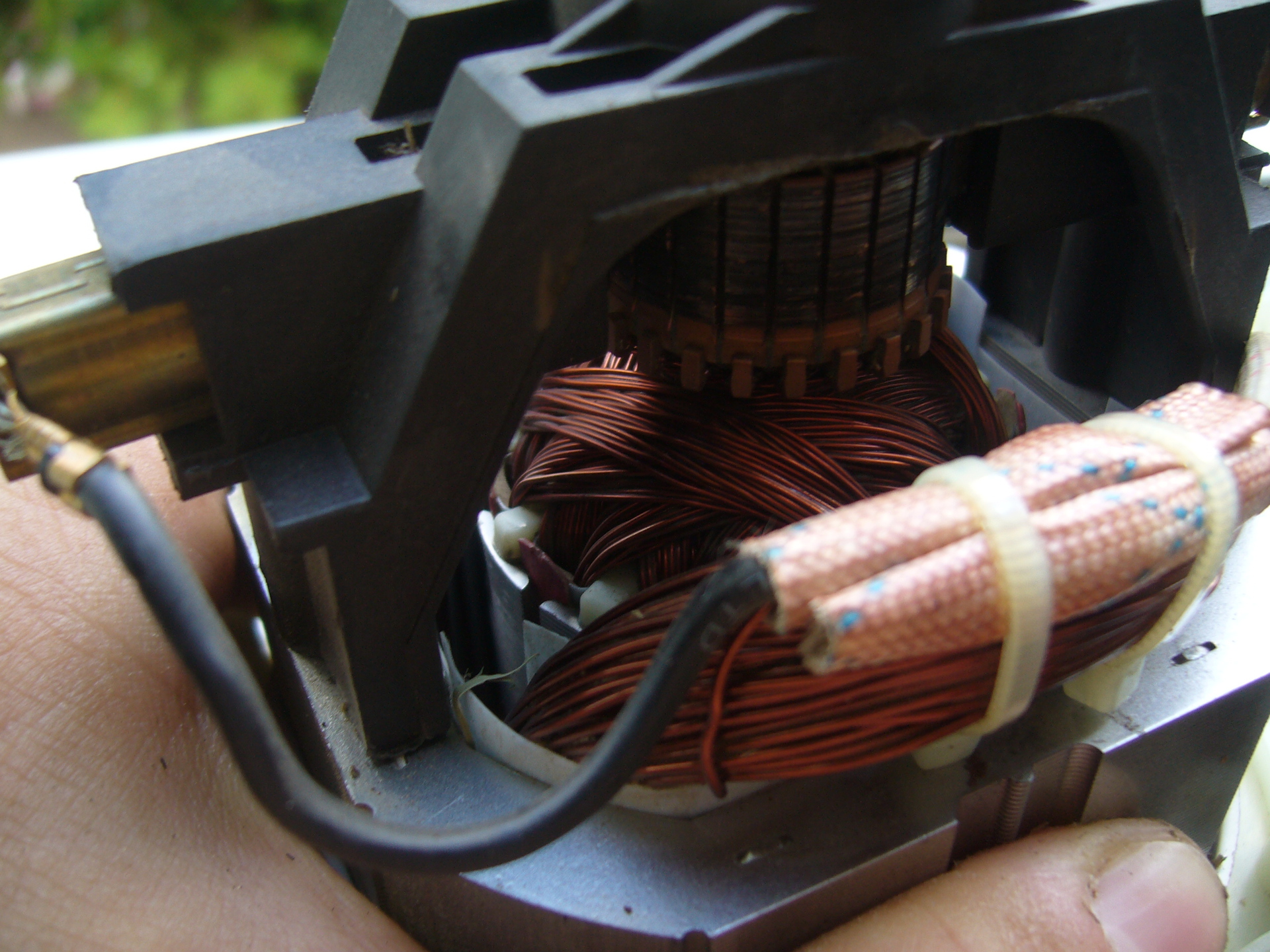 Nem hiszem hogy zárlatos, mert ment, illetve megy ez a vacak, úgy értem magas hangon nyüszítve forog, pont mint amit fog a csapágy. Vajon ha sikerül befogni a forgórész tengelyét akkor akár le is csavarhatom?