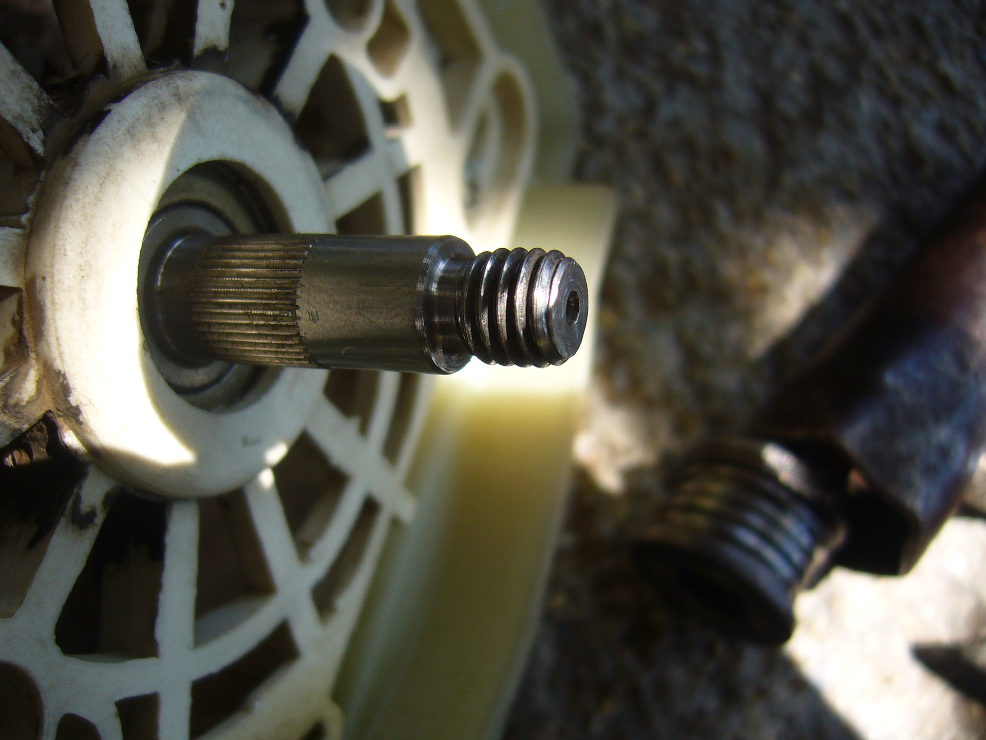 Én próbáltam már lehúzni de nem mertem tovább feszíteni a csapágylehúzót, attól féltem, elpattan valahol és az esetlegesen kilendülő kar megelőlegez némi fogászati szakrendelést. Volt egy-kettő, amit körbemértem (utángyártáshoz) majd addig vágtam, köszörültem amíg valahogy le nem jött, akár darabokban is de utólag kiderült, nem érte meg a fáradtságot.