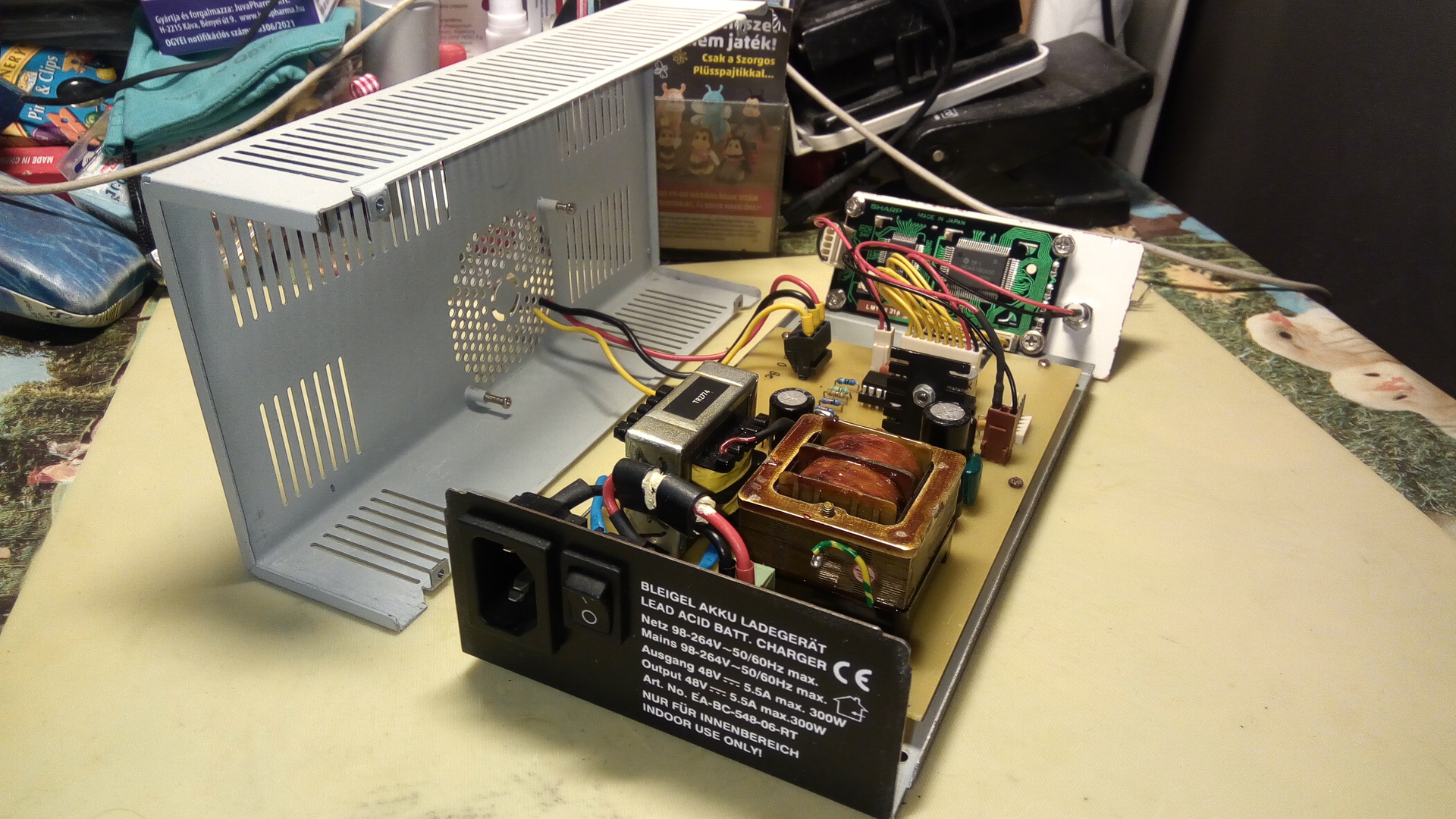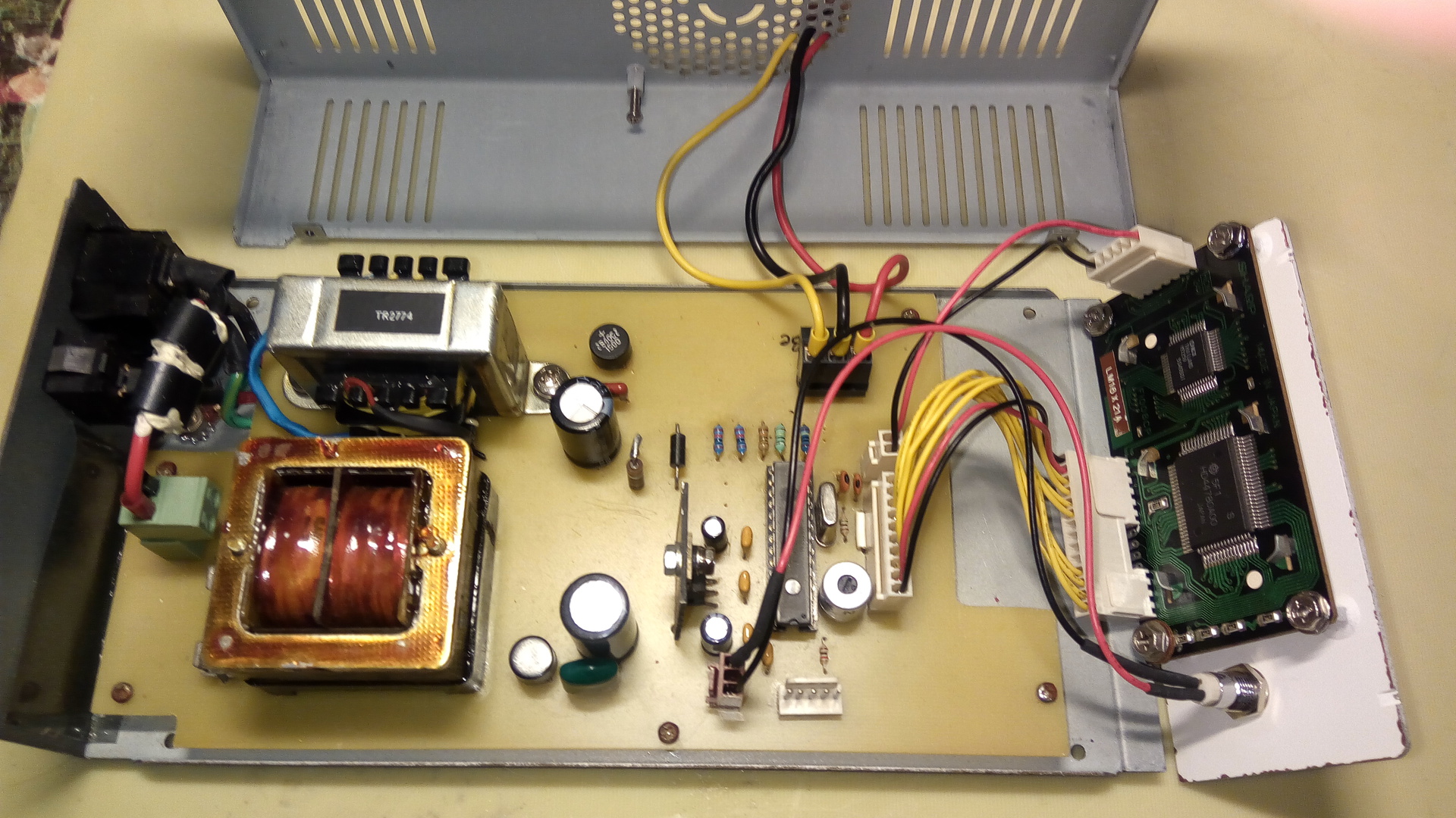 Igazából fel se akartam tenni, de elakadtam és ugye ahogy több szem többet lát, úgy több fej többet tud(hat). Az utóbbi pár évben ipari mennyiségű alkatrészhez jutottam hozzá ( legálisan ! - ki akarták dobni a szemétbe, de ha elviszem, vihetem ). Legalább egy szakajtóra való tápkocka is van közte. Ezek "vizsgálatára" jó ez a kis szerkezet. A 3 kiálló derót végén csatlakozóba való "hüvelyek" találhatók, abba lehet beledugni a tápkocka 3 lábát. Sárga: +30V, Fekete: GND, Piros: a szabályozott kimenet. Eredetileg egy sima 3 és fél digites LED kijelző lett az elejére tervezve ( az előlapja el is készült ), de ilyen 2x16 Char. LCD kijelzőm is van jó pár. Akkor meg had foggyon ... Egy 328 -as Atmegával lett meghajtva, az végzi az A->D átalakítást is. És akkor jöjjön a segítség/ötlet kérése. Nem kell hozzá túl sok esztétikai "szép" érzék, hogy a tetőn kilógó 3 vezeték ne szúrja az ember szemét. ( Még ha funkcionálisan jól is működik. ) Valami olyan egyszerű, kis csatlakozó után érdeklődnék, amibe könnyen be lehet tenni a TO220 tokból kilógó 3 lábat. Valami rugós csatlakozó, mint némelyik WAGO, de olyasmi is jó lenne mint a PIC programozókon az IC befogó, csak kisebben. Ha némi "lakatos munka árán" lehet csak beépíteni, rászánom az időt és fáradtságot. Minden pozitív észrevételt/javaslatot szívesen fogadok és megfontolás tárgyává teszem. Köszönöm, hogy elolvastad !