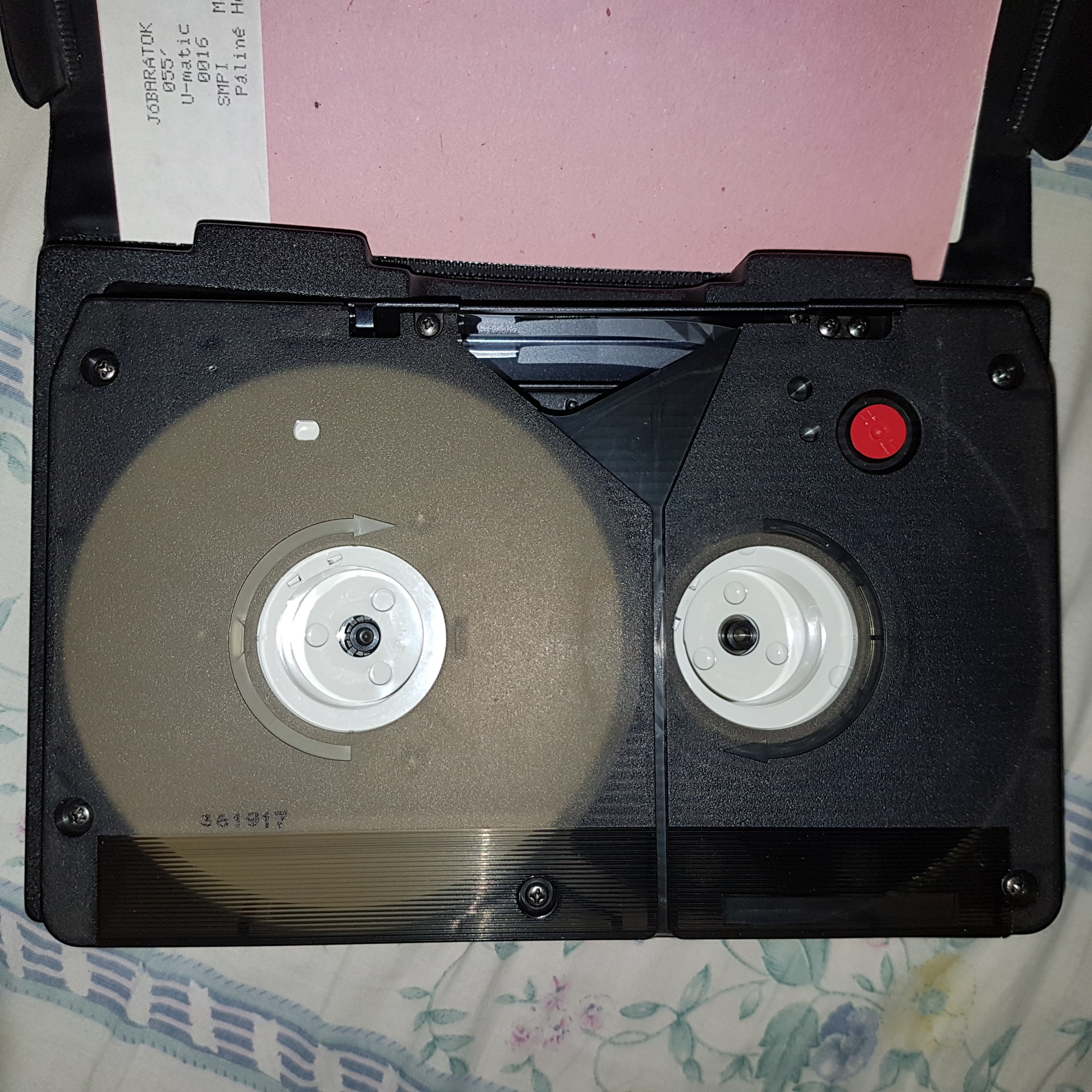 Vasárnap került hozzám egy U-matic kazetta. A VHS-nál szélesebb a szalag, ez a méret ~1 órát tudott tárolni, egyes források szerint ~14(!) kg volt hozzá a hatalmas lejátszó magnó.