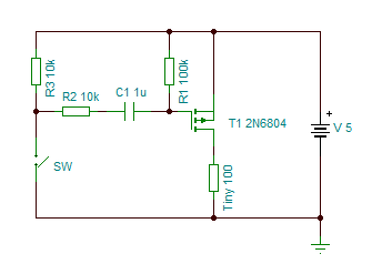 Hello! Nem kell ezt agyoncifrázni, ha már ott a PFet. Miután meg van a táp, a Tiny is lehúzhatja a Gate-et.