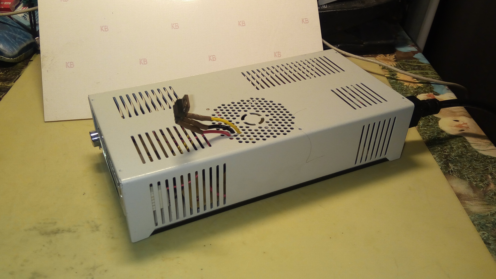 Doboz kívülről, doboz belülről. Proci a kijelző alatt. Elvileg nem került volna beépítésre, mert utólag derült ki, hogy "szűk" a doboz, nagyon nehezen lehet kivenni a dugaszolható sorkapcsokat és a kábeleknek is kevés a hely. A tovább fejlesztett változat már sokkal szellősebb.