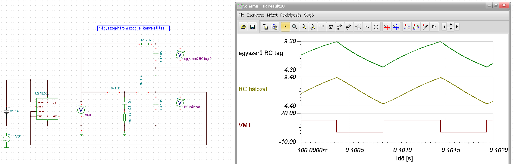 Ha rosszul választom meg az integráló rész időállandóját, akkor nagyon sok idő fog kelleni. amíg elérem a kívánt áramot, vagy pedig az áram erősen hullámozni fog. Ezekkel sosem voltam jó barátságban Tehát az kellene, hogy anjobb oldali műveleti erősítő lassan emelje a kimeneti feszültségét, ha pedig elértük a kívánt áramot, kicsit ejtse a kimeneti feszültséget, és indul az egész elölről, de a második körtől kezdve az áram átlagértéke a kívánt érték, és hullámozni fog az integráló tag miatt (legjobb esetben észrevétlenül kicsit). Szuper, köszi a tippet. Tina-val meg lehetne állapítani az időállandókat is, mondjuk ehhez először a háromszögimpulzus periódusideje kellene, ahhoz találtam egy jó kis műveleti erősítős generátort, csak egy négyszögjel kell neki.