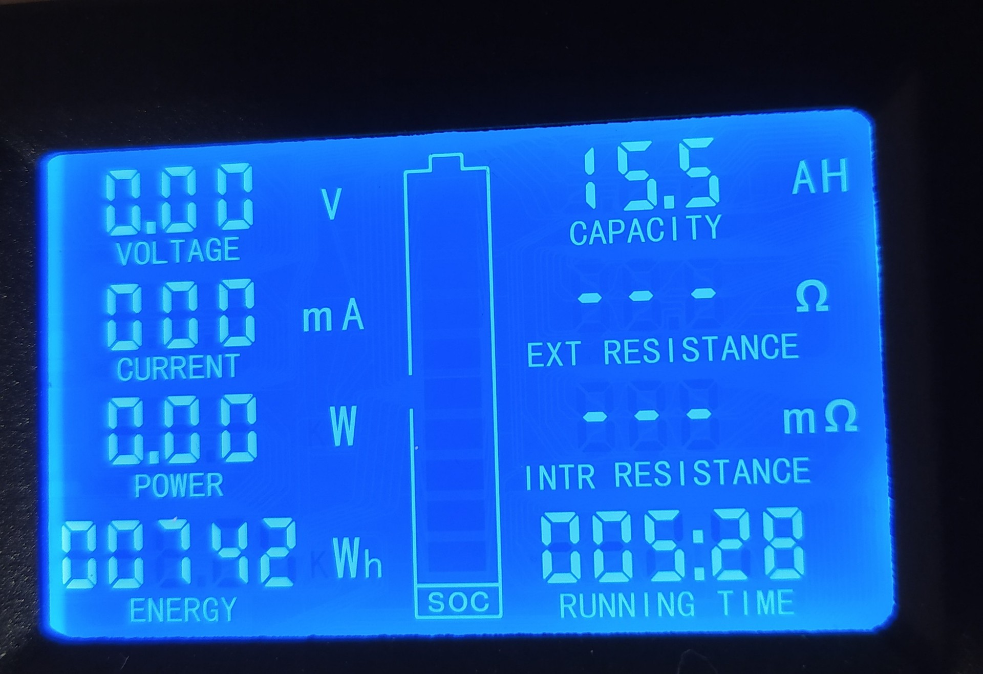 Plusz még egy kis infó, mert ez a leghasznosabb tulajdonsága a műszernek, hogy kikapcsoláskor elment minden értéket, és onnan folytatja a mérést, ahol tartott. Tehát ha egy akksit merítünk, amiben van BMS, a BMS lekapcsol, akkor következő bekapcsoláskor azonnal tudni fogjuk, hány percig tartott a merítés és mit tud az akksi. Én mondjuk megtápláltam 10V-tal az aux bemeneten, így mindig látom a mért értéket, de 8V-tól 120V-ig előállítja magának a szükséges 3.3V-ot.