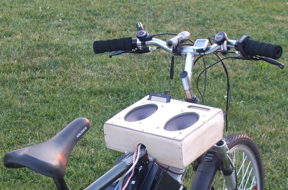 Üdv! Én tegnap hangtechnikát alkottam a bringámra. A bringán van 4db 12 voltos 18 Ahs akku a hajtás miatt és ebből ugye lehet+-24 voltot levenni egy AB osztályú erősítőnek. A hangszórók egy igényesebb, régebbi siemens tvből vannak ami eléggé magas hangminőséget biztosít ezáltal. Ezenkívül még készült egy töltéskiegyenlítő ami 4 akkut figyel,h ne emelkedjen a fesz töltéskor egyiken se 14,9 volt fölé. Ha ez bekövetkezik akkor elkezd rákapcsolni egy irf540es fetet az akkura párhuzamba. Egy kis trimmer potival lehet beállítani,h mekkora fesznél avatkozzon be. A hangfal magasságából levágtam 2 centit. Íme a Bringa. Az erősítő tápcsatiját egy az egyben a töltő helyére kell dugni.
