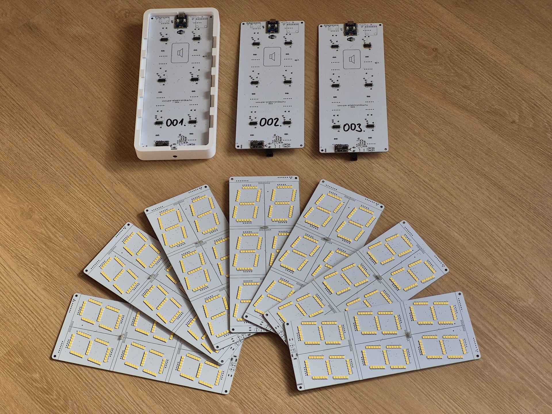BKK Futár kijelzőSziasztok!Kb hét éve készítettem már egy hasonló áramkört ami működött ugyan, de elég primitív volt. Most viszont újra elővettem a dolgot és immáron a mesterséges intelligencia segítségével egy nagyságrendekkel jobb áramkört és programot hoztam össze: Ez egy saját BKK Futár-kijelző. Három pár hétszegmenses LED kijelzője van, amelyeken egy adott BKK megállóból induló három legközelebbi járat indulását mutatja meg. Azaz hogy hány perc múlva indul a következő három busz/villamos/vonat/metró/troli, akármi. Nem csak budapesti BKK megállókkal hanem az ország összes Volánbusz-megállójával és vasútállomásával is működik. Van egy webfelülete és azon lehet beállítani a megállóhely azonosítóját. Hogyha az adott megállóban több járat is megáll de nekünk ebből nem mindegyik kell akkor szűrést is be lehet állítani járatokra és célállomásokra is. Az adatokat a WIFI-n keresztül a BKK-tól percenként kérdezi le, de a kijelzőket nem csupán ekkor frissíti. A BKK-tól másodperces indulási időket kap, ezeket minden frissítésnél beleírja három időzítőbe amit szépen dekrementál másodpercenként, és a kijelzőkön az értékeket eszerint jeleníti meg. Valójában a gyakorlatban valamivel pontosabb is mint a BudapestGO alkalmazás. Van a panelon egy VEML7700 fényszenzor aminek a jele alapján a szegmensek fényerejét automatikusan állítja az ESP32, bár ez kikapcsolható és manuálsan is beállítható a fényerő. Ez az első áramköröm ami sorozatgyártásra készült. Az ehhez való optimalizálás illetve a költséghatékonyság jelentős növelése okozott némi fejfájást. A fotókon látható paneleken csak a LED-ek vannak gépileg beültettetve, mert biztos nem fogok panelonként 252db LED-et forrasztgatni... Viszont a következő hardververzió már teljesen gépi beültetéses lesz, ez már gyártásra kész állapotban van. Itt már minden alkatrész egy oldalon van és az alkatrésztípusok számát is a negyedére redukáltam. Ja igen, még egy degub üzemmód is bele lett programozva, amikor is az összes kijelzőn statikusan 0-9 közti szám vezérelhető ki, ezzel tesztelhető hogy minden szegmens működik-e. Illetve ilyenkor az eszköz belső logjában (ilyenje is van) csomó plusz diagnosztikai adatot is loggol. A készülék teljes egészében okosotthon-kompatibilis, Home Assistant automatikusan felismeri és minden paramétere, beállítása kezelhető belőle. Például éjjelre lekapcsolhatóak a szegmensek hogy ne világítsanak. De a panelon van még hely egy DS18B20 hőmérőnek, egy BME280 hőmérséklet/páratartalom/légnyomás szenzornak és egy MAX98357 modulnak (I2S digitális erősítő) is. Ezeket okosotthonos alkalmazás esetén lehet beültetni és akkor akár hangokat, TTS üzeneteket lehet lejátszatni egy kis hangszórón. Ja meg egy LD2410B emberi jelenlét-szenzornak is van még hely a panelon, ezzel azt tudja érzékelni hogy van-e a kijelző előtt ember és milyen távolságban. A készülék burkolata természetesen 3D-nyomtatott. Három részből áll: A fehér burkolatból aminek az elején a szegmenseknél csak 0,4mm vastag az anyag hogy a LED-ek fénye átvilágítson rajta. A felső és a középső kijelzők közt van egy nagy 0,6mm vastag rész is, emögött van a fényszenzor. A burkolaton belül van egy feketéből nyomtatott betét is, ez azért van hogy a LED-ek fénye csak a szegmensen belül terjedjen, fehér filamentből ugyanis kb lehetetlen kellően fényzáró réteget nyomtatni. A harmadik része egy kis kör alakú karmos izé, ezzel lehet a falra rögzíteni a szerkezetet. Ezzel szabványos villanyszerelési, falba süllyesztett szerelvénydobozhoz is rögzíthető a kijelző és vízszint-állítási lehetőséget (sőt, magasság-állítási lehetőséget) is biztosít. Ebben az esetben az elektronika tápegysége a kijelző mögé, a szerelvénydobozba kerül. A másik opció az alján lévő adaptercsati és 24V-os adapter. Ilyenkor ez a kör alakú karmos rögzítőizé kétoldalas ragasztóval (IKEA Alfta) rögzíthető a falra. Az AI (ChatGPT) segített egy csomó dologban: Gyakorlatilag a programot egy az egyben ő írta. Én egyetlen kódsort sem írtam, pedig a forráskód majdnem 33 ezer karakter! Persze nyilván erősen fogni kellett az AI kezét, meg mindig csak részfeladatokat osztogattam ki neki, de gyakorlatilag az egészet ő írta. És nem csak a forráskódot! Megkértem hogy írjon néhány PHP-t amit feltöltöttem a szerveremre hogy oda az eszközök diagnosztikai adatokat tudjanak küldeni ami a fejlesztést, debuggolást jelentősen megkönnyíti. Ezeket is megírta. Sőt, csinált egy térképes megjelenítő felületet is hozzá ahol OpenStreetMap térképre ráteszi az összes eszközt (hogy melyik megálló van beállítva rajtuk). Ugyanis az összes BKK és Volán megálló GPS koordinátája elérhető a BKK-tól. Öszsesen 67853 megálló. (A vasútállomások koordinátái sajnos nem elérhetőek.)Sőt, még abban is segített hogy írt egy beállítási segédletet HTML-ben, aminek a linkjét QR-kóddal rászitázom a következő gyártatásnál a panelokra. Magát a QR-kódos ötletet is a ChatGPT adta, és a leírást is ő készítette. Jó, ezt mondjuk jelentősen átírogattam... Itt van egyébként ha érdekel valakit: Bővebben: Link Az áramkörnek van egy pici gyengesége sajnos: A jelenlegi verzióban használt ESP32-C3 chipnek nincs elég memóriája. A ország megállóinak 99,9%-ánál elegendő a memóriája, de például a 7-es busz vonalán csúcsidőben olyan sok járat áll meg hogy az már nem fér bele (este még elbírja). Ezért a következő hardver revízióban ESP32-S3 lesz, mert annak a PSRAM-jába minden belefér. A hozzászólás módosítva: 9:42