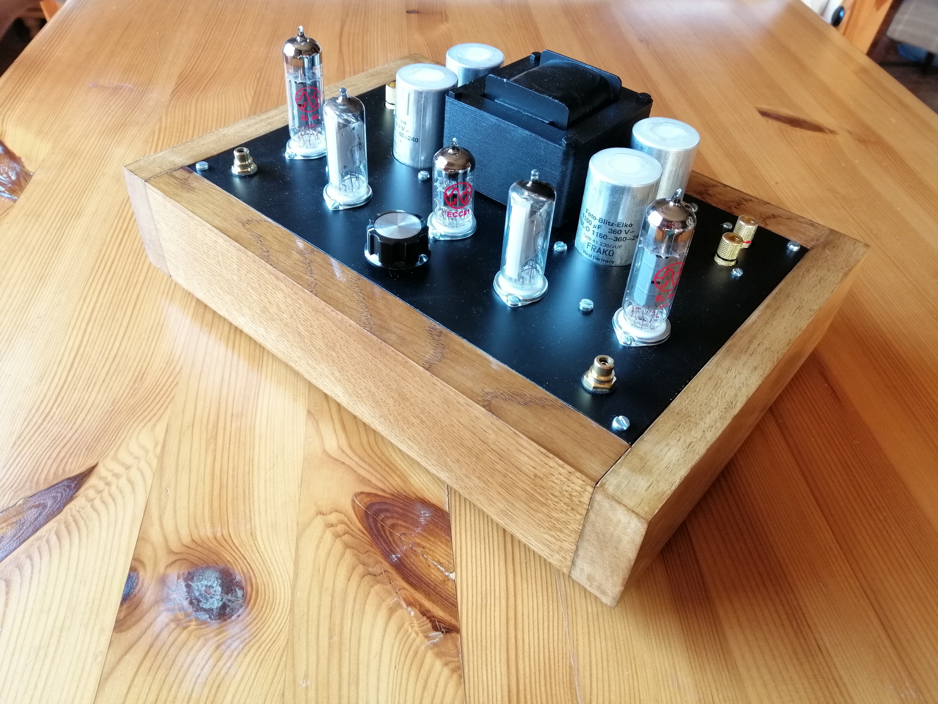 Újabb EL84 SE-t készítettem, ECC 81-es meghajtással, ezúttal a kimenők beköltöztek a dobozba. A doboz tölgy és diófa, íme A hozzászólás módosítva: Okt 29, 2021