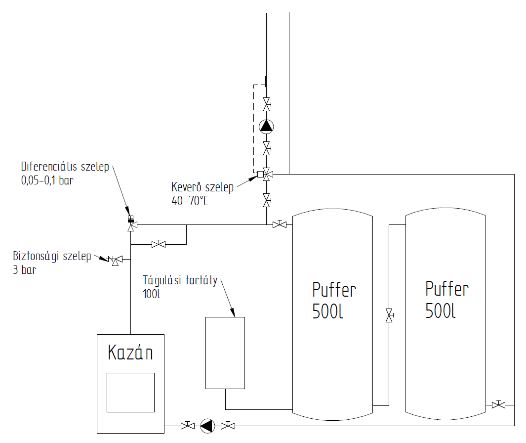 Egyenlőre a soros-párhuzamos kapcsolással nem foglalkoznék, de ha puffert teszel egy vegyeskazánhoz, akkor oda nagyon ajánlatos lenne a kazán visszatérő ágába egy kazánvédő szelep beépítése. Anélkül nagyon kátrányosodni fog a kazánod!