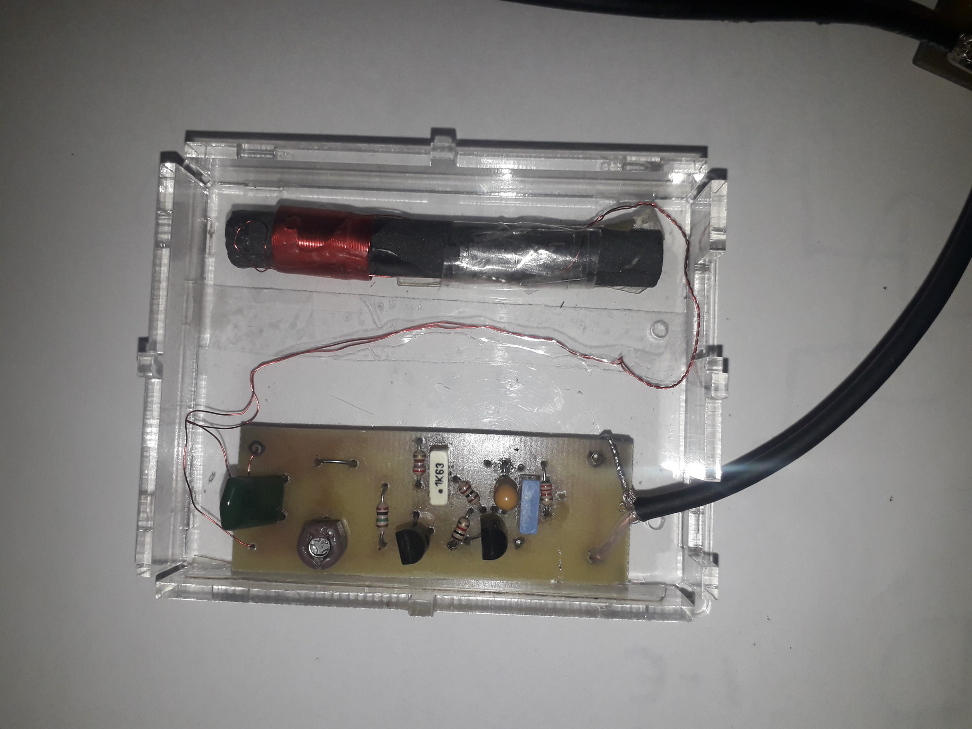 Mivel bőven van hely, érdemes lett volna beletervezned még vagy 2 kondi helyet a rezgőkörnél, mert egyáltalán nem biztos, hogy jó helyen lesz a rezonanciája! Gondolom az antenna és a fóliakondi gyári..., az többé kevésbé ki van hangolva, de hogy mennyire pontosan..., illetve a fóliakondi hőfoktényezője sem a legjobb ebből a szempontból! Jobban járnál, ha NP0-ás anyagú kondit tennél a helyére, és azzal hangolnád ki pontosan...