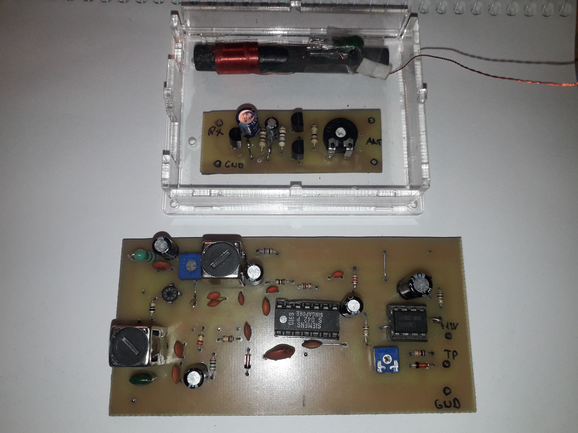 Mivel bőven van hely, érdemes lett volna beletervezned még vagy 2 kondi helyet a rezgőkörnél, mert egyáltalán nem biztos, hogy jó helyen lesz a rezonanciája! Gondolom az antenna és a fóliakondi gyári..., az többé kevésbé ki van hangolva, de hogy mennyire pontosan..., illetve a fóliakondi hőfoktényezője sem a legjobb ebből a szempontból! Jobban járnál, ha NP0-ás anyagú kondit tennél a helyére, és azzal hangolnád ki pontosan...