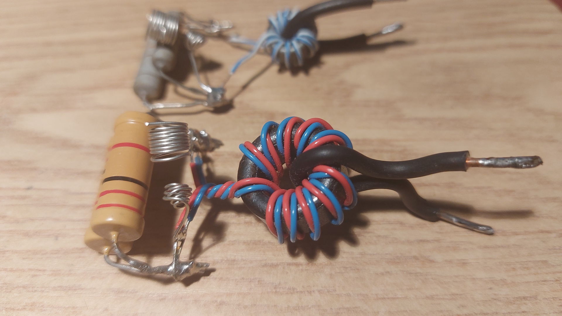 Ferci javaslatára a primer mellé tekertem a szekundert... így 156uH a szórási ind. amihez 50nF kapacitás kellene... na ilyenem nincs, bennt hagytam a 2*33nF-ot.