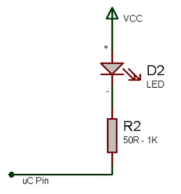 // A ledek korlátozó ellenállással a táp felé, aktív alacsony szintre