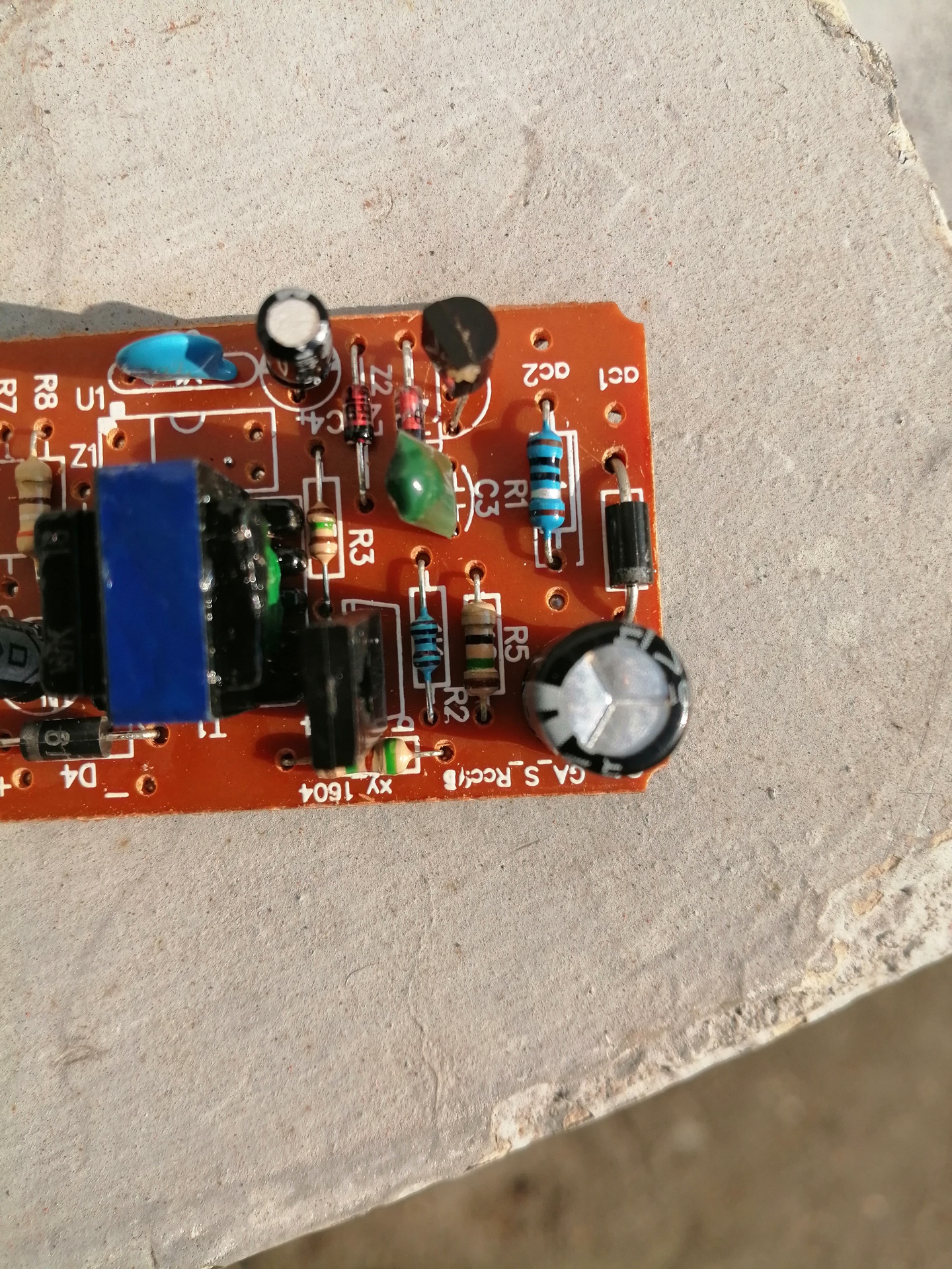 Sajnos elég sok a furatgalván. A három 1 Ohmos ellenállás a Fet source lábán a másik a relén és a kisebb egyenirányítón negatívján van. Nem egyszerű nyák! A Fet drain lába a nagyobb egyenirányító és a puffer kondenzátor negativ lábán van.