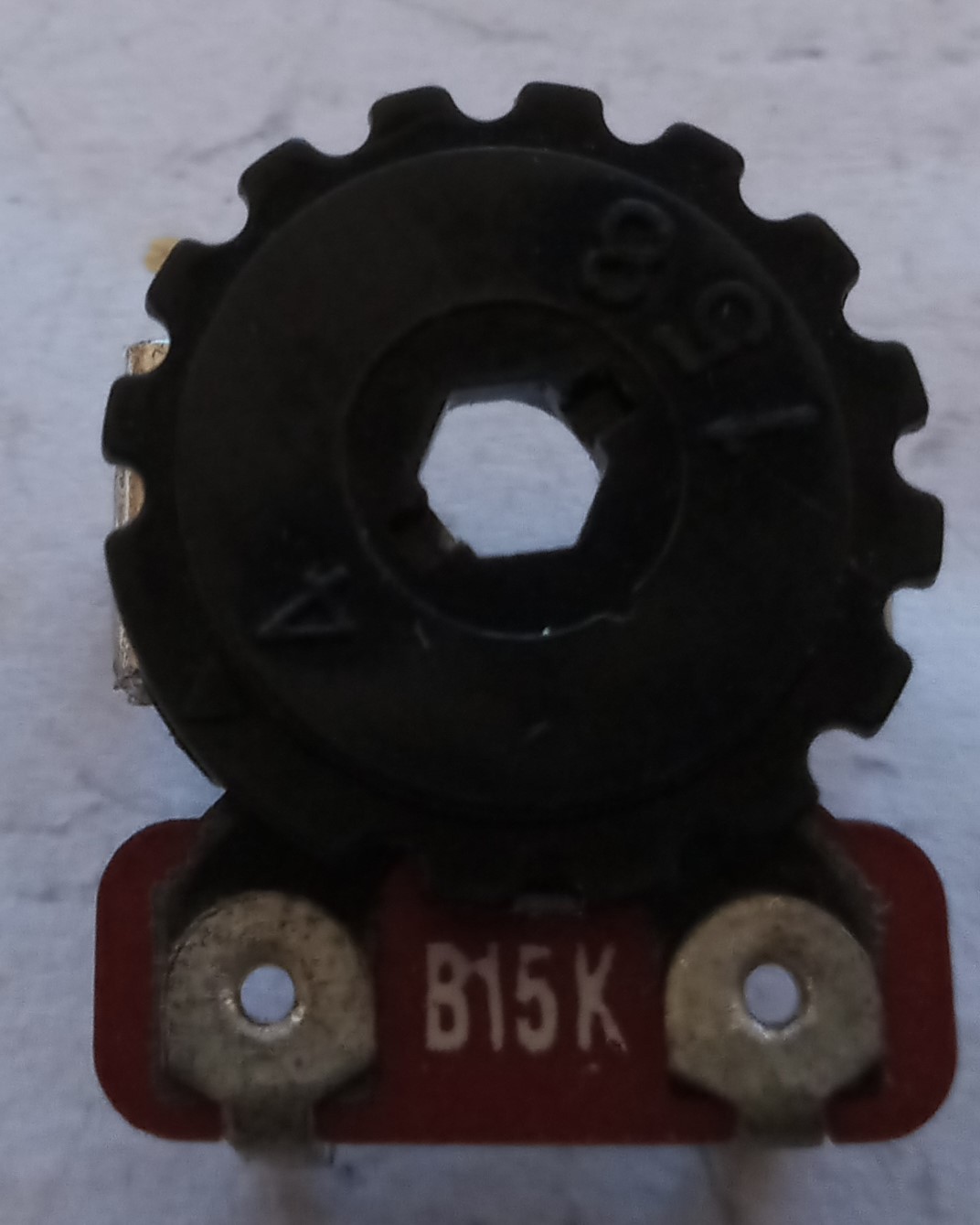 A képen látható alkatrész tudom hogy potméter, csak megerősítést szeretnék kérni az értékével kapcsolatban. 15 KΩ és B-s,ugye? Csak azért kérdem,mert a két szélső lábon 89KΩ-ot mérek.