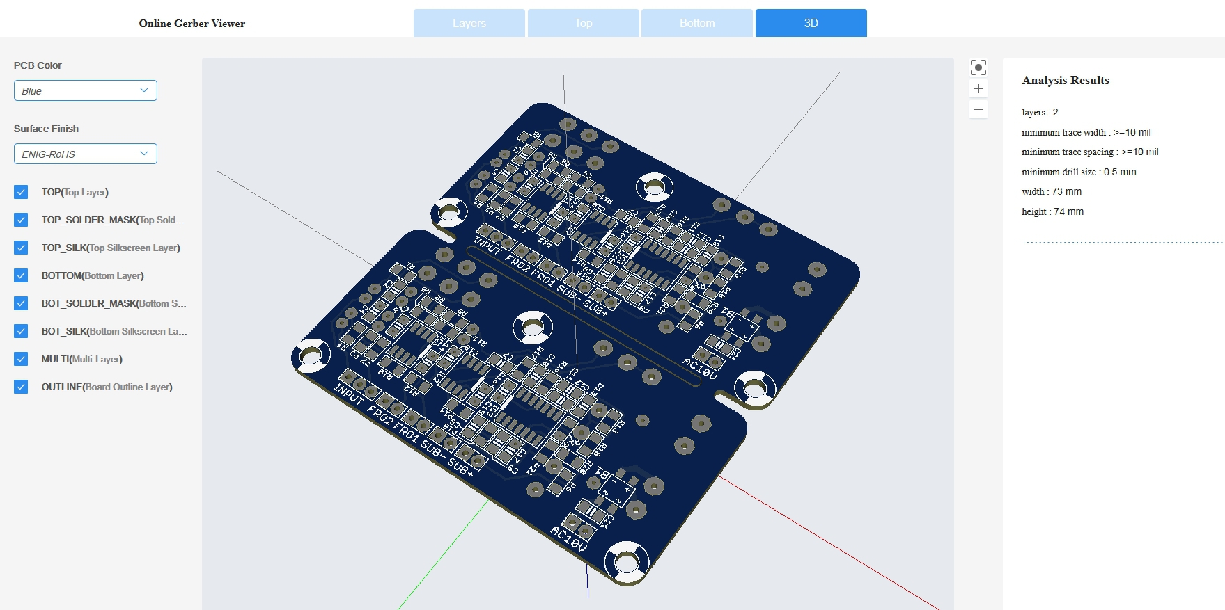 Lehet már régebben is létezett, de mivel én nem használom, így csak most figyeltem fel rá. A JLCPCB gerber megjelenítője alapvetően megváltozott. Jobb a felület, több opció van, a top/bottom mellé bekerült egy layers és egy 3D lehetőség is.