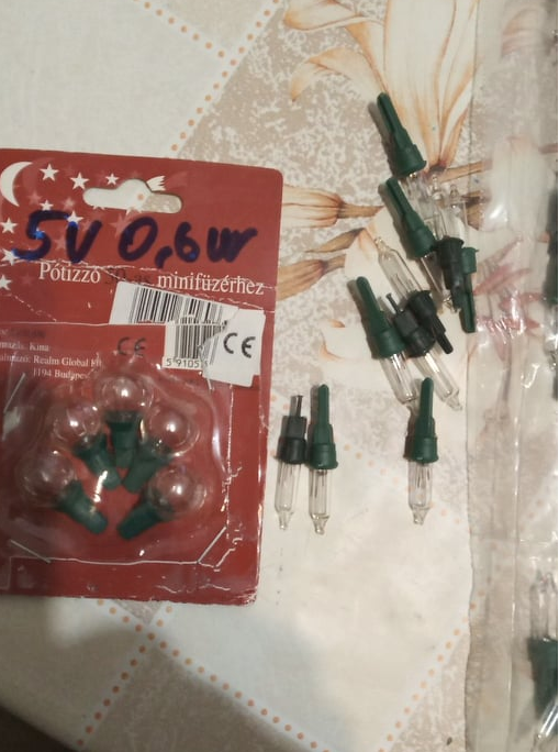 Ameddig nem találtam a jelenlegi füzérre ( glim lámpás) , legtöbbször vagy saját égőből, vagy idegen helyről származó, de azonos névleges áramú izzóból tettem a füzérhez egy pár darabos kiegészítést, ezzel az égősorok élettartamát jelentősen meg lehet növelni. Ha kiégnek, akkor is fontosabb hogy azonos áramú égő kerüljön bele ( ha lehet több) , mint az azonos feszültség.